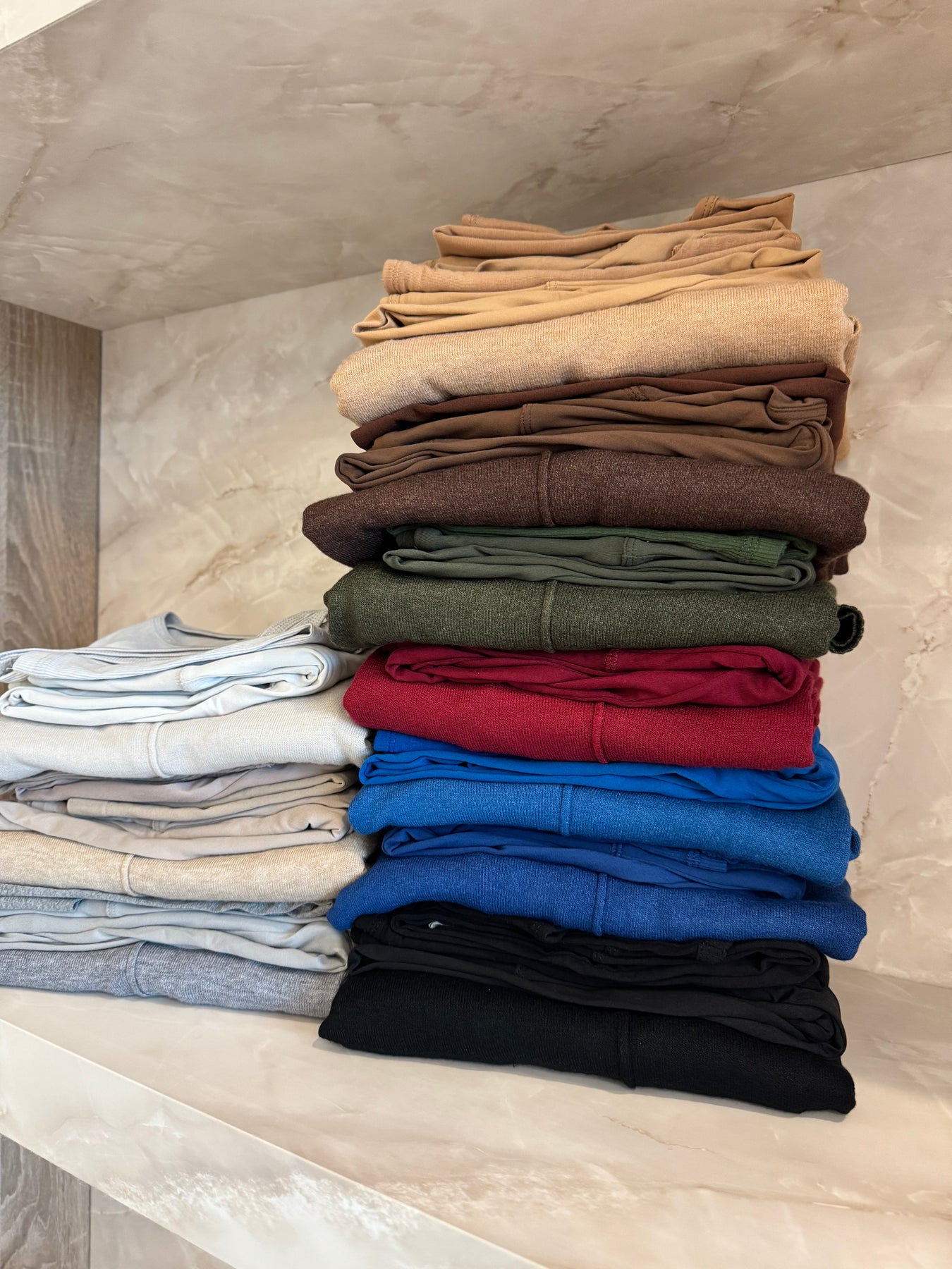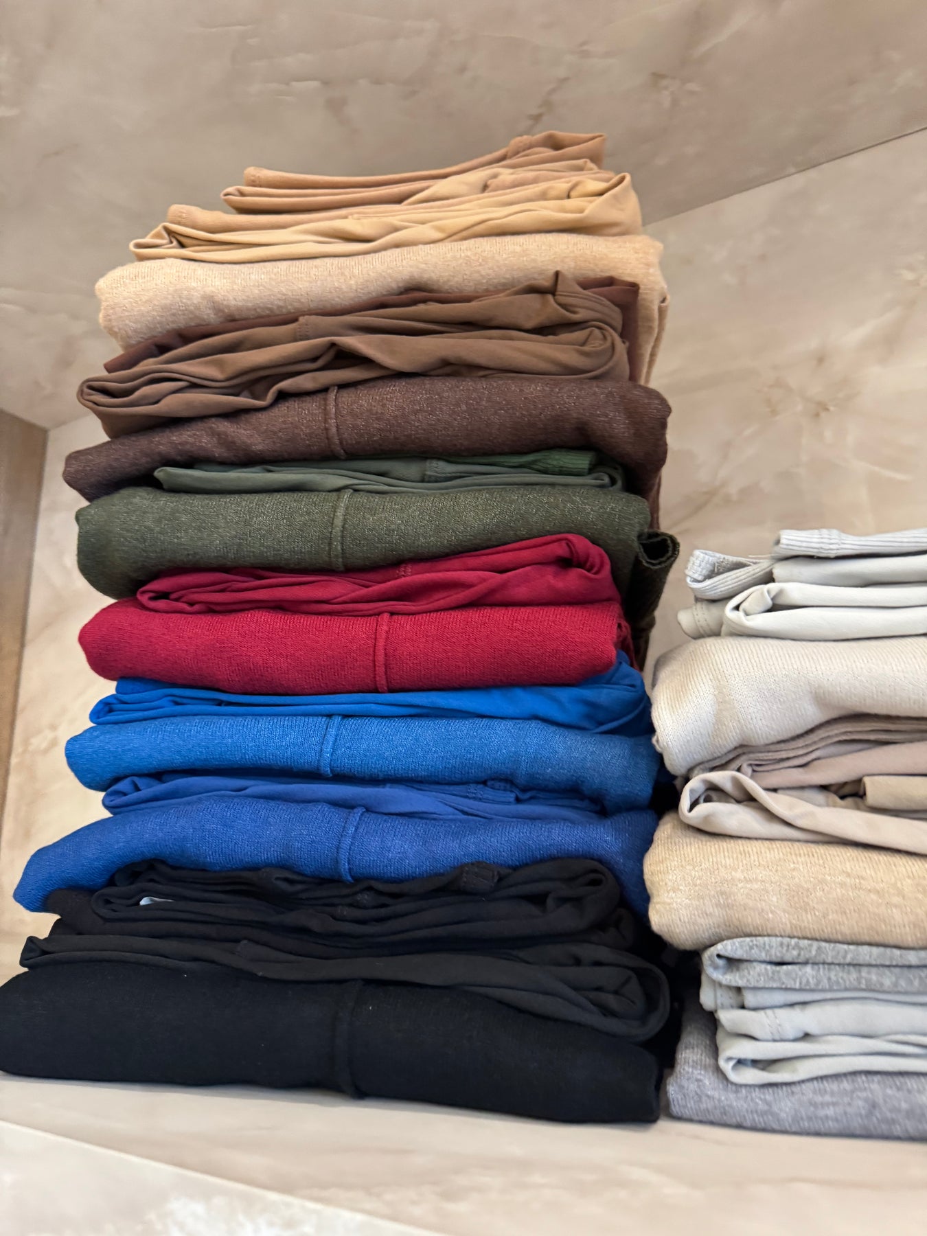 In between sizes? Go with the bigger size to ensure the leggings fit at a good area on waistline