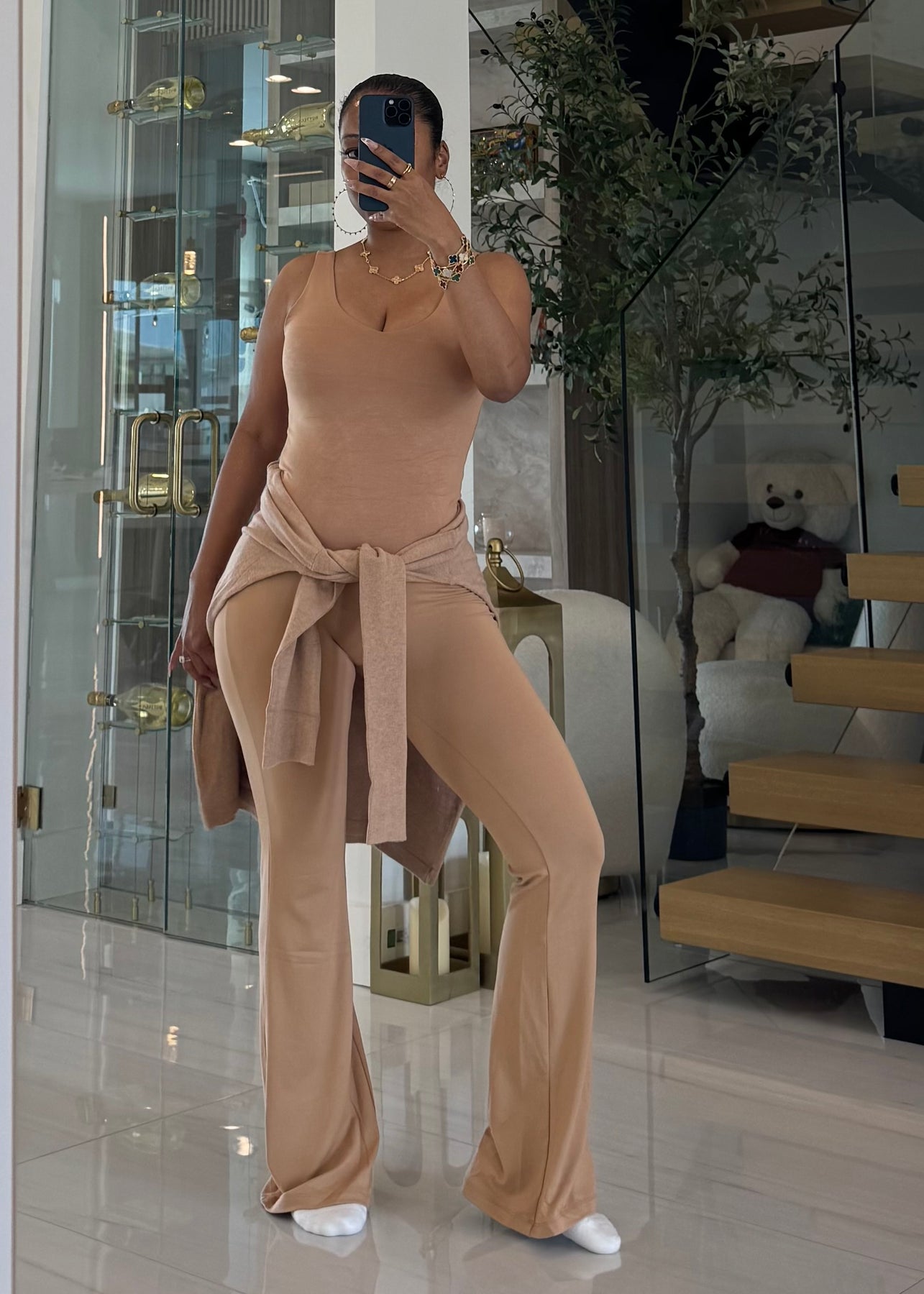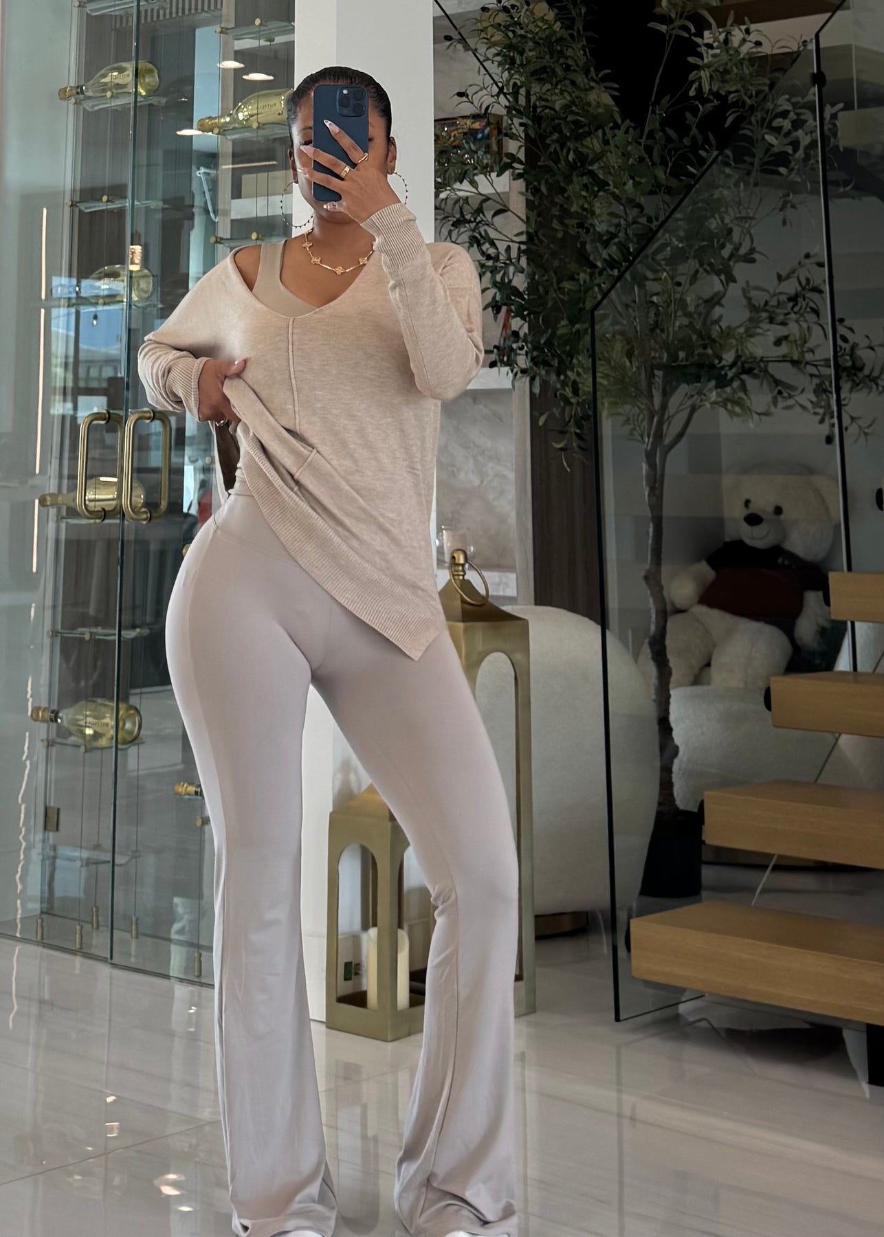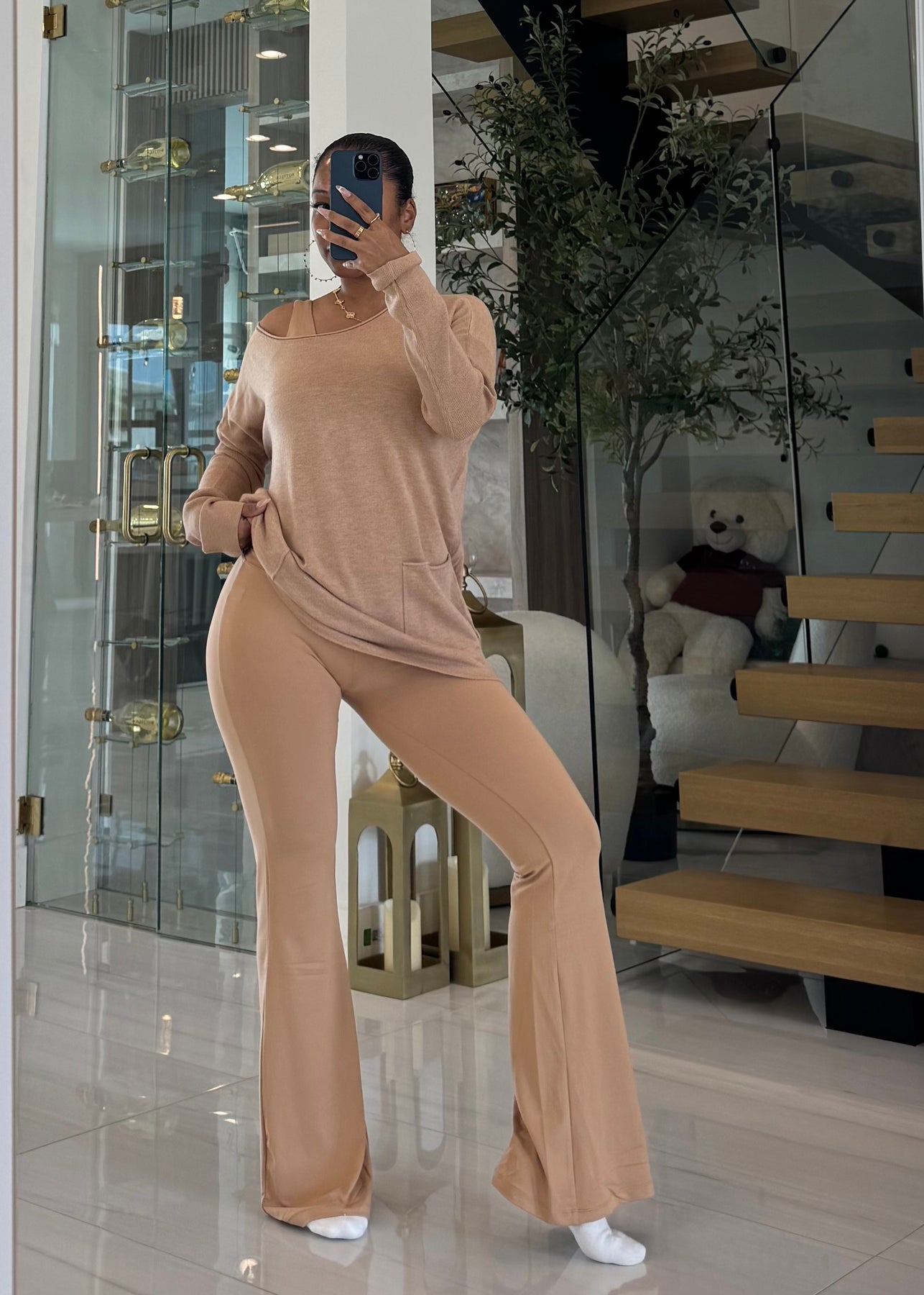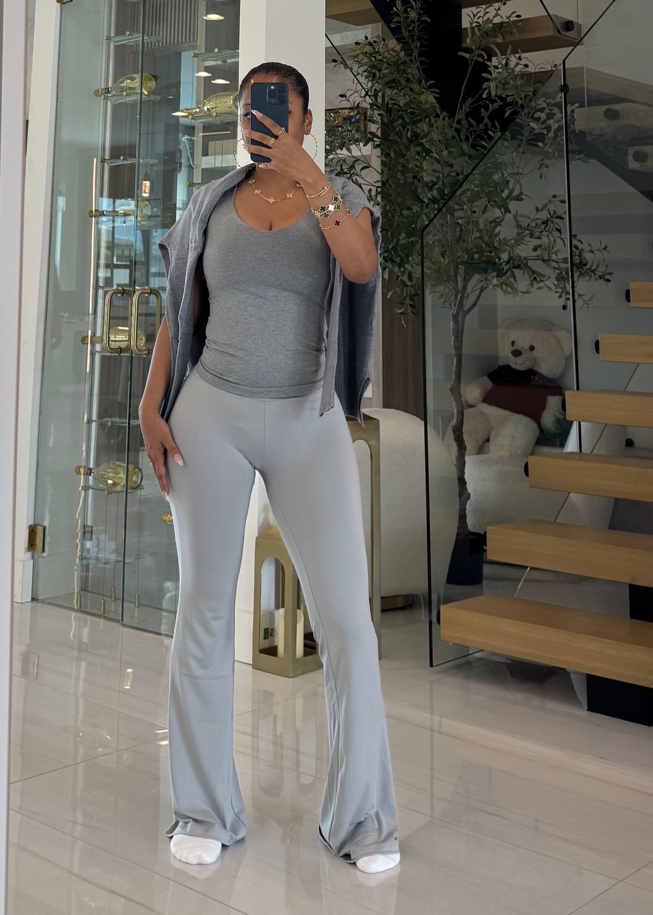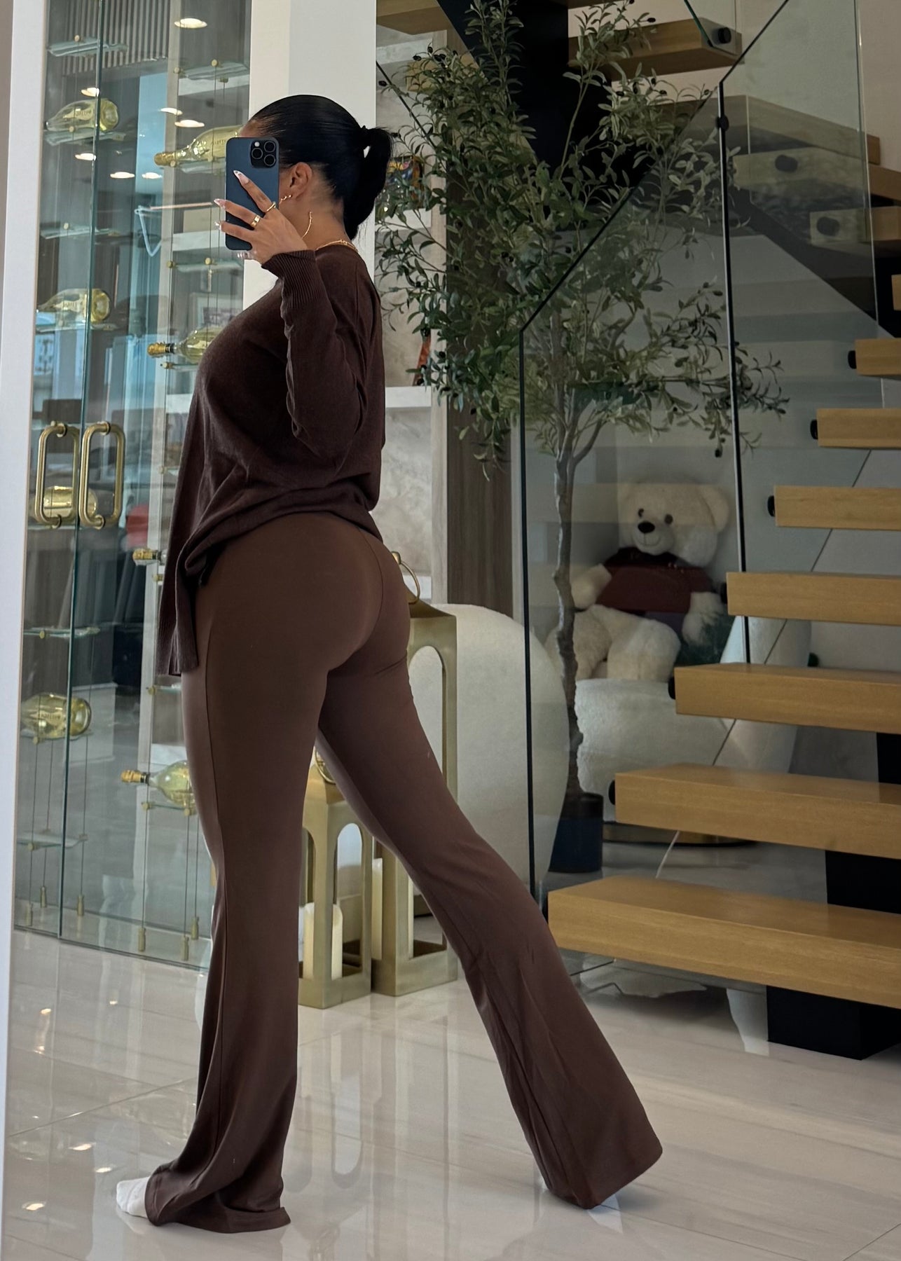 High waist signature soft butter flare leggings pants with lining detail