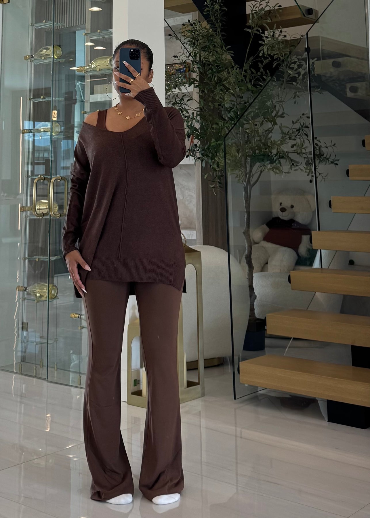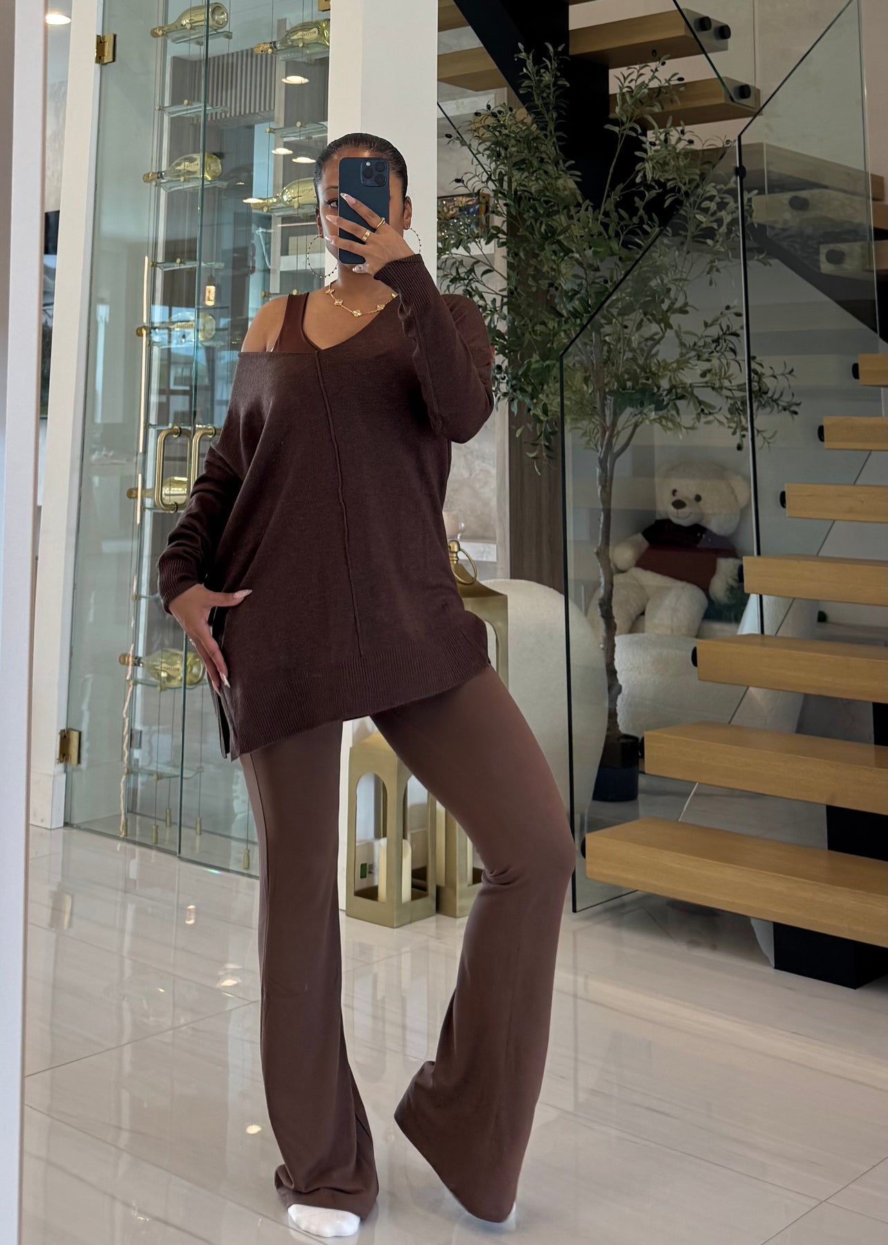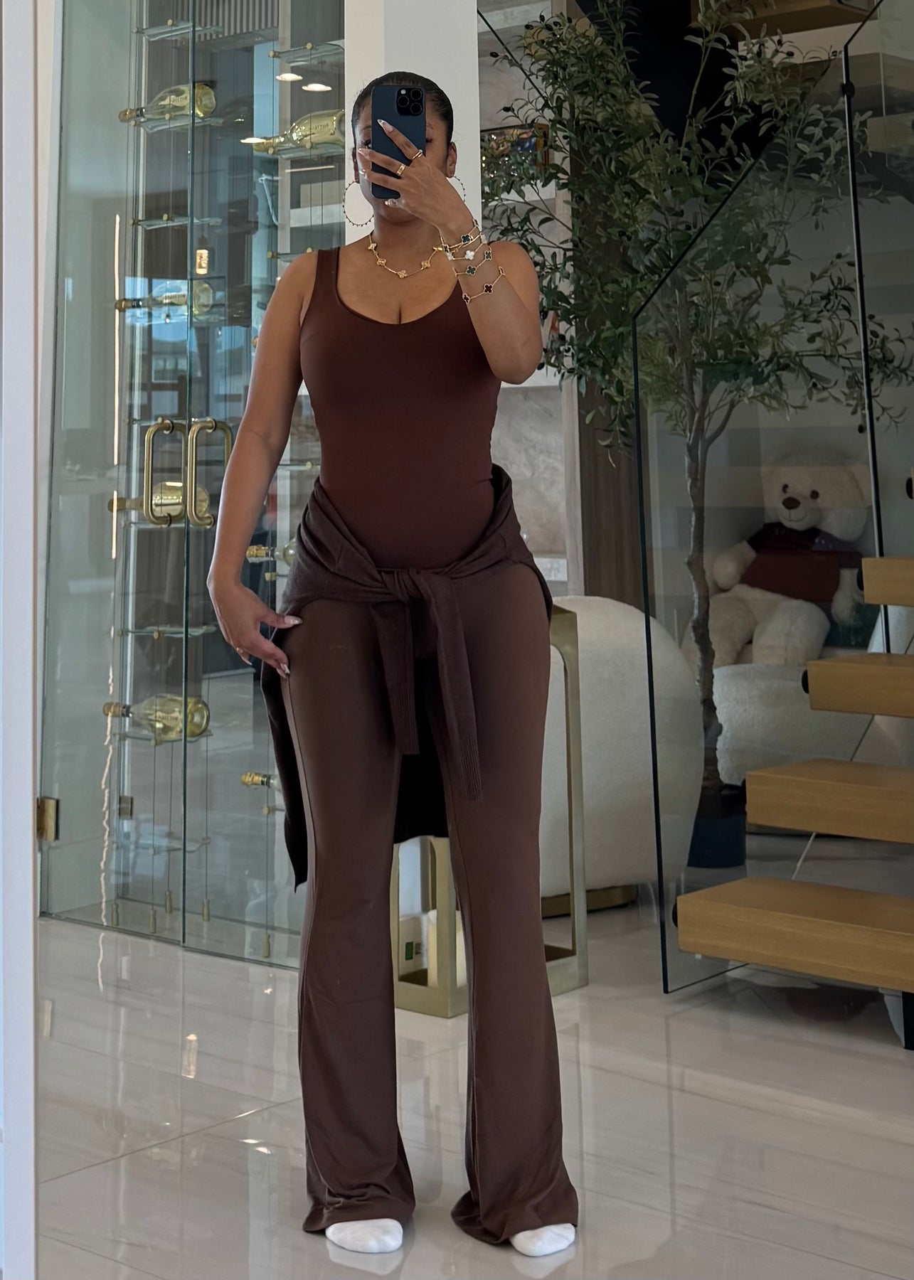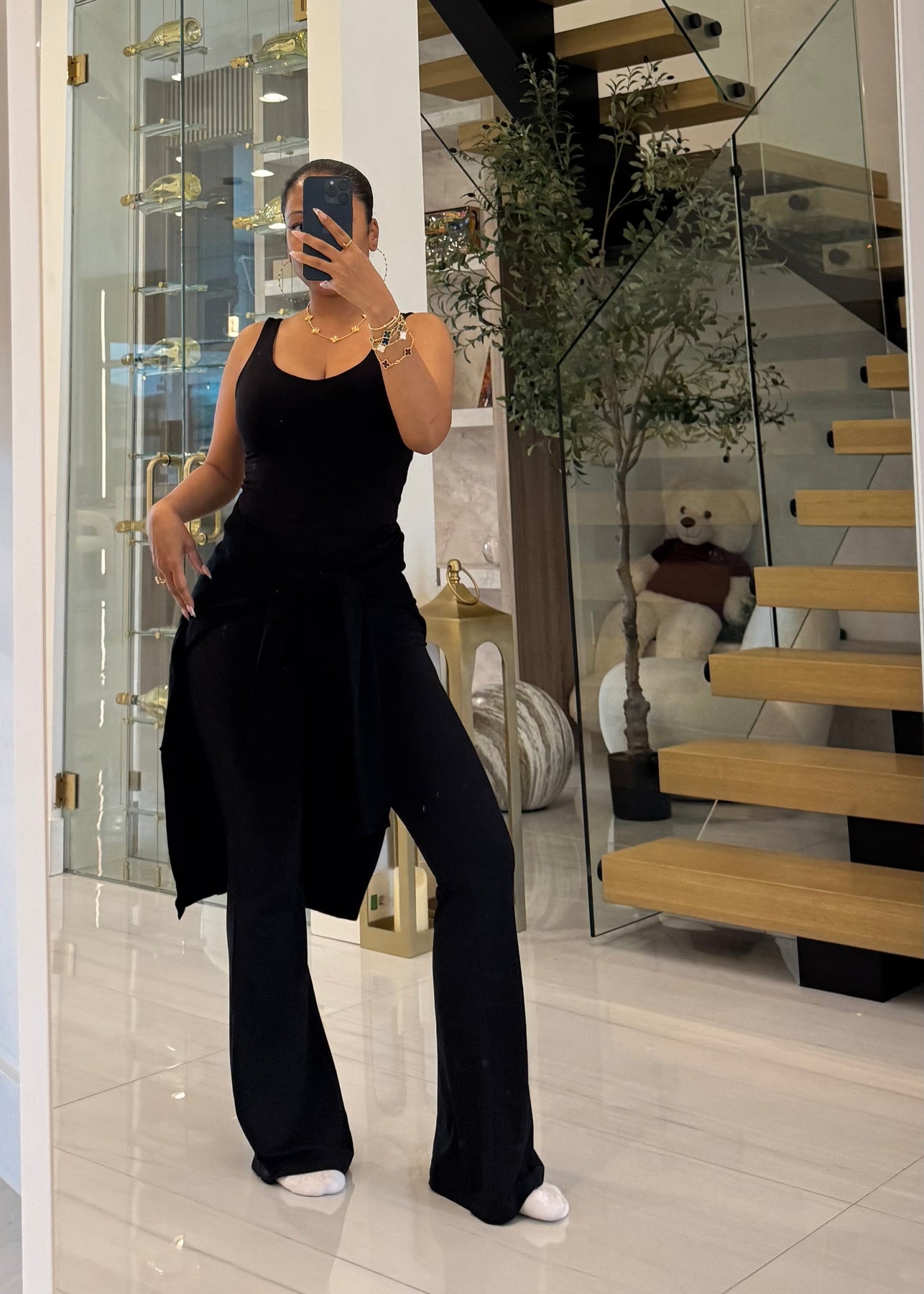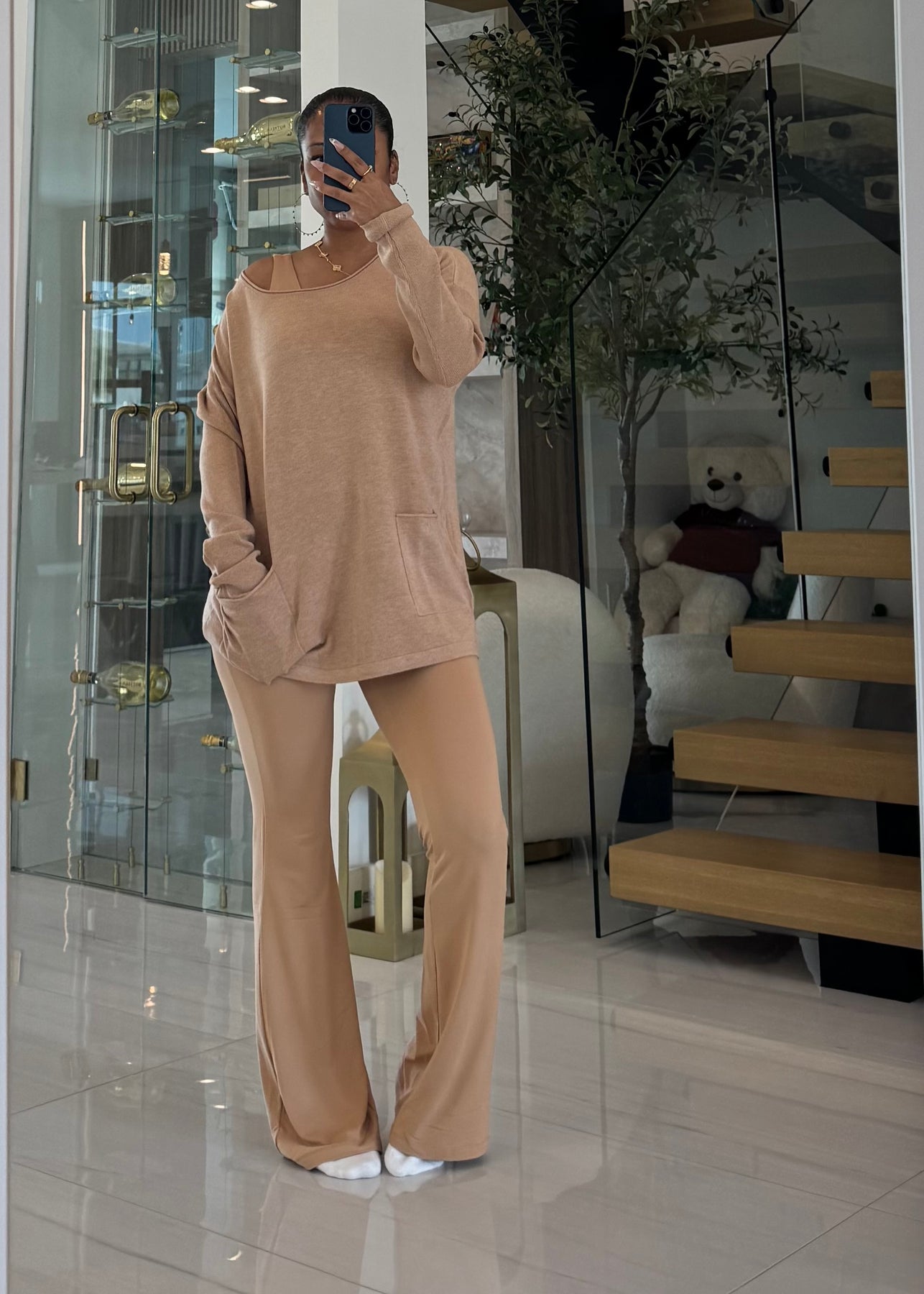 High waist signature soft butter flare leggings pants with lining detail