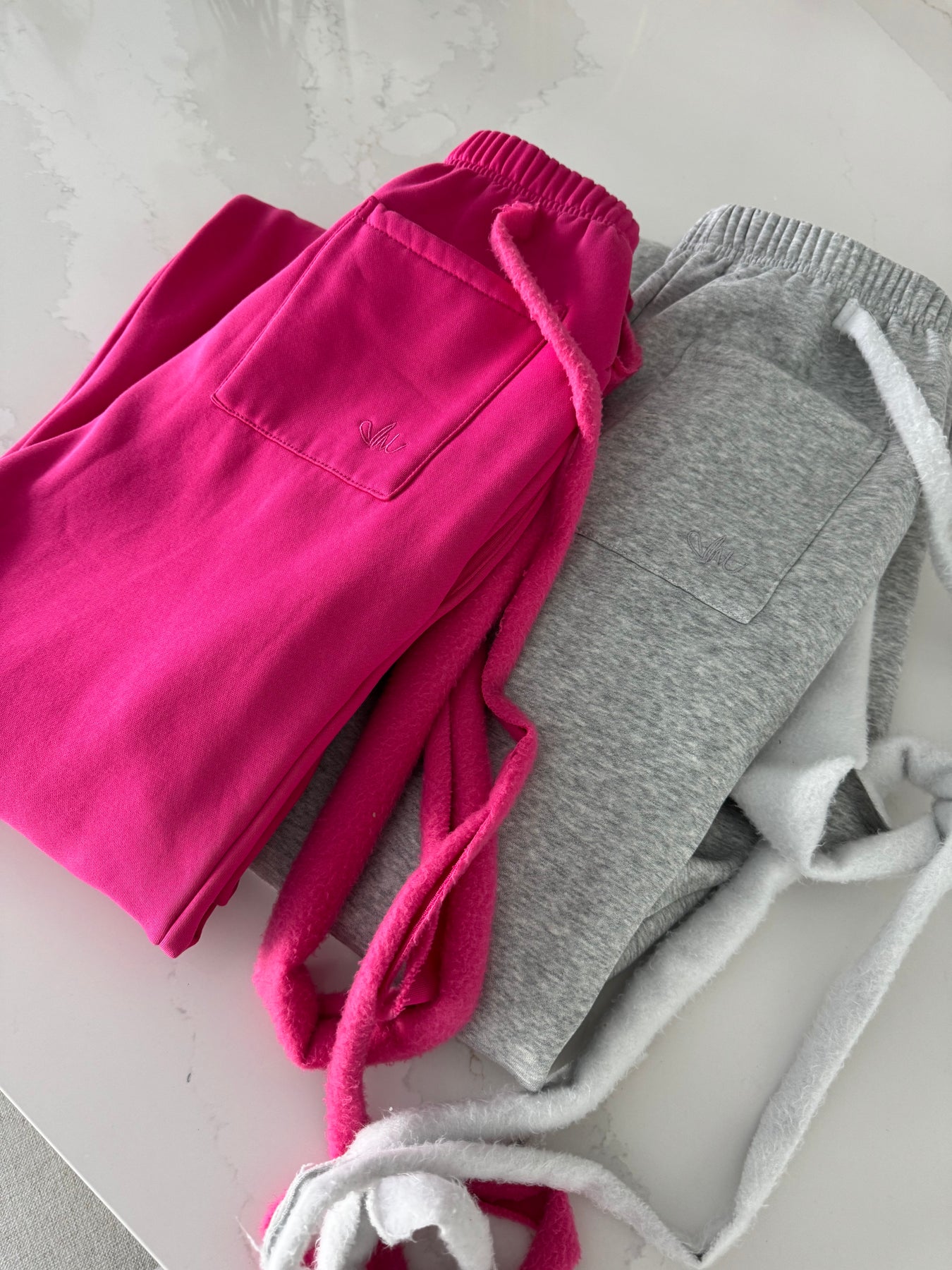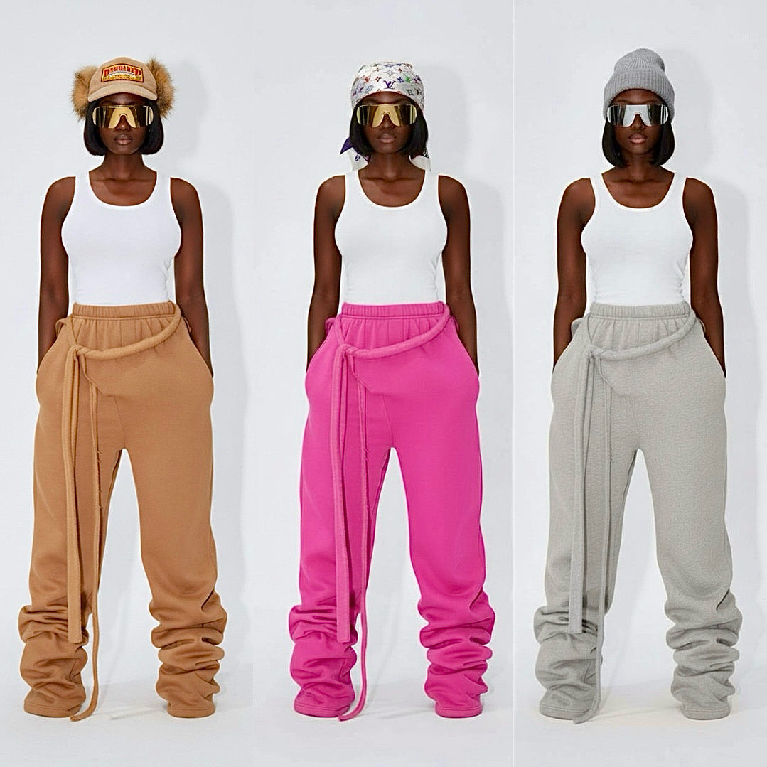 Drip Sweatpants have relaxed drop fit and extra long 40 inch inseam for a bottom scrunch. Elastic waistband. Raw hem front flap with 2 extra long raw strings that can be knotted together or wrapped around thru belt loops. Hand pockets and 1 butt pocket with subtle embroidered MM Logo. Extra crotch front flap for that front zipper jean illusion.
