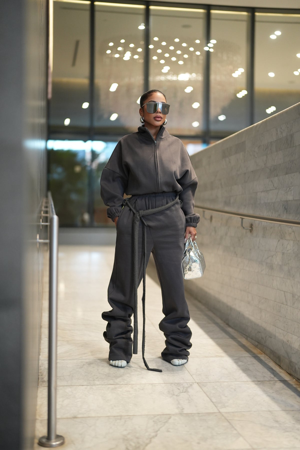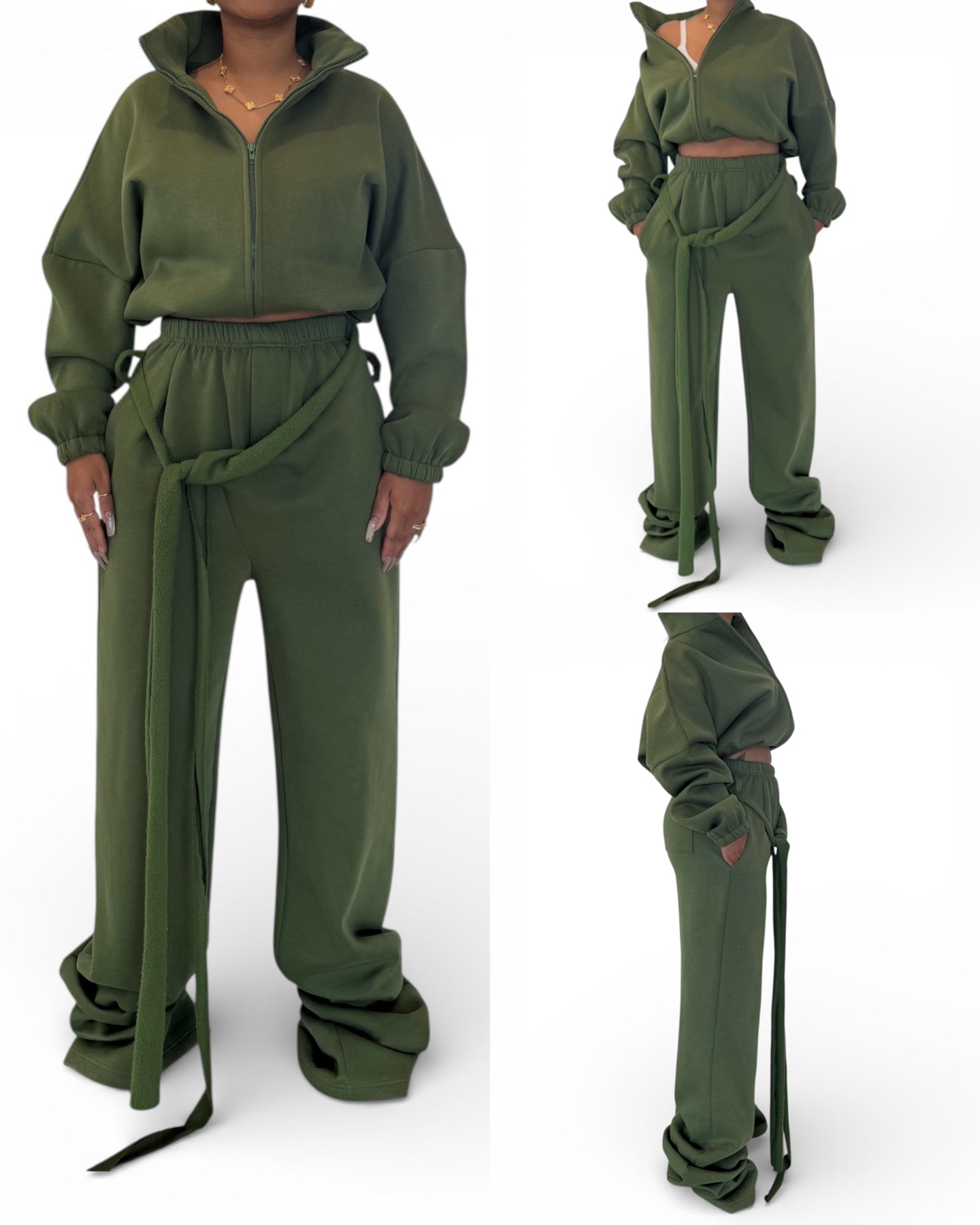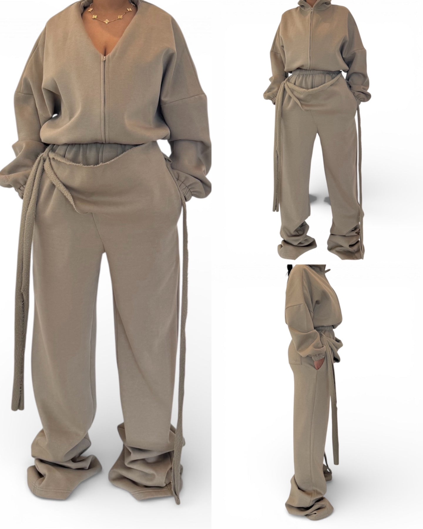 Fit: The waistband will snatch you in. Overall the fit is relaxed and does fit nicely around the butt and hip area. If you are between sizes it will depend on if you want the pants to fit more baggy or have a slight fit around the hip and butt area. There is that sweatpant stretch and jacket fits wide so there is no doubt chest and back area will be fine.