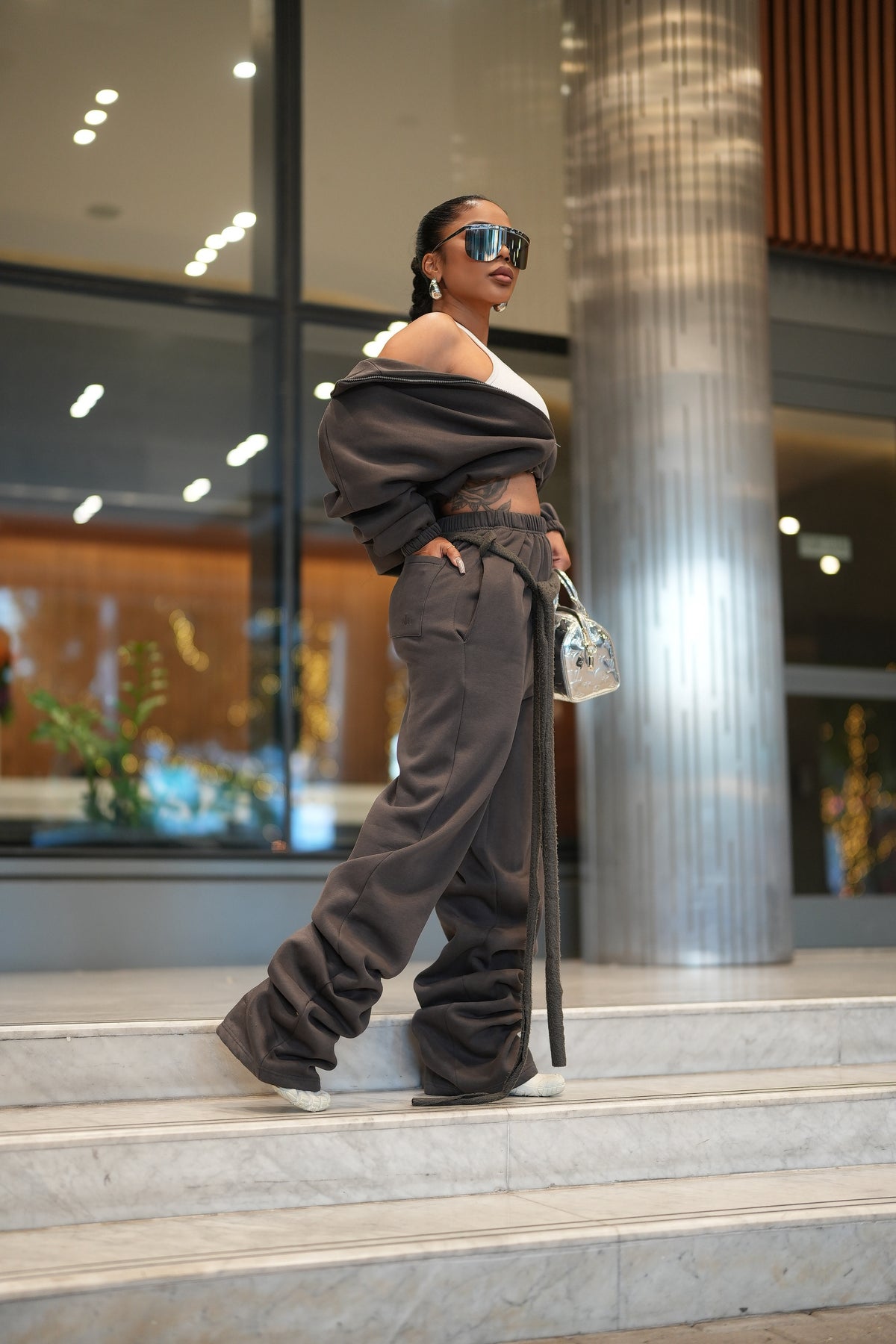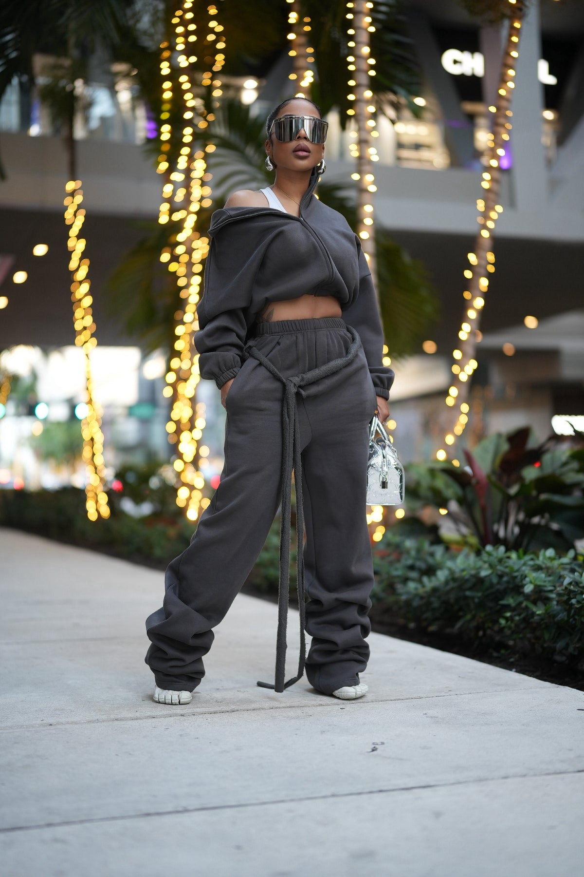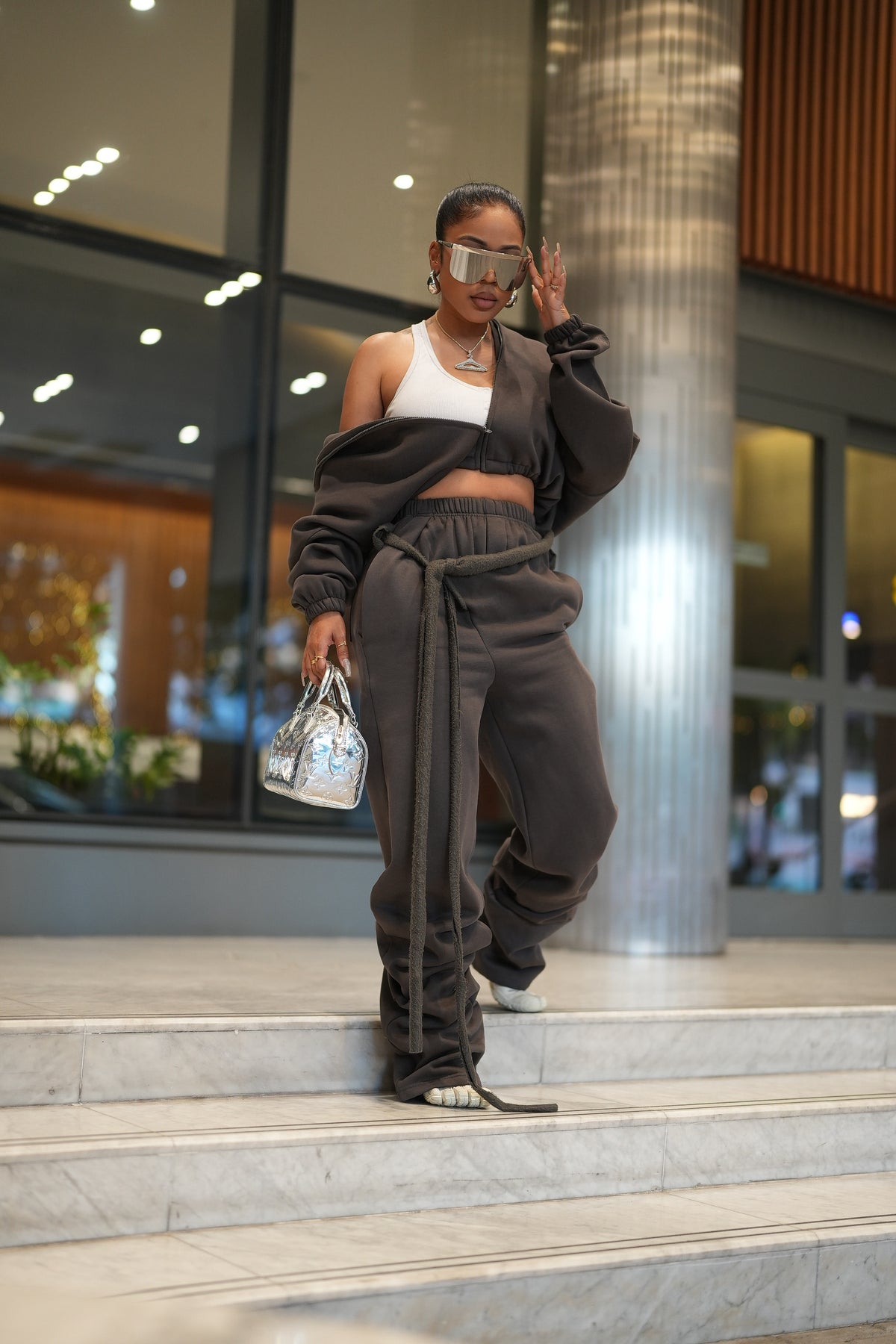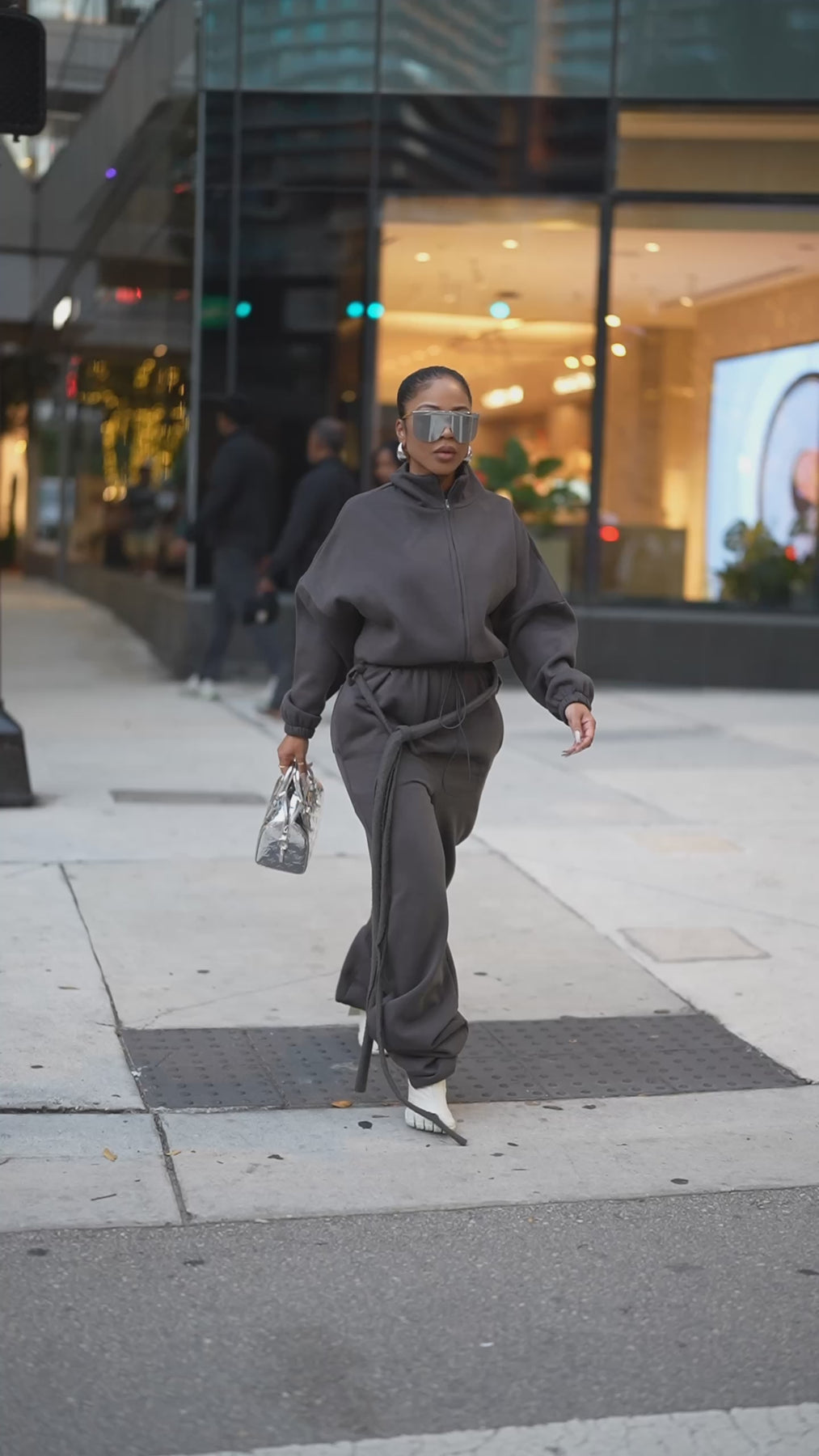Fit: The waistband will snatch you in. Overall the fit is relaxed and does fit nicely around the butt and hip area. If you are between sizes it will depend on if you want the pants to fit more baggy or have a slight fit around the hip and butt area. There is that sweatpant stretch and jacket fits wide so there is no doubt chest and back area will be fine.