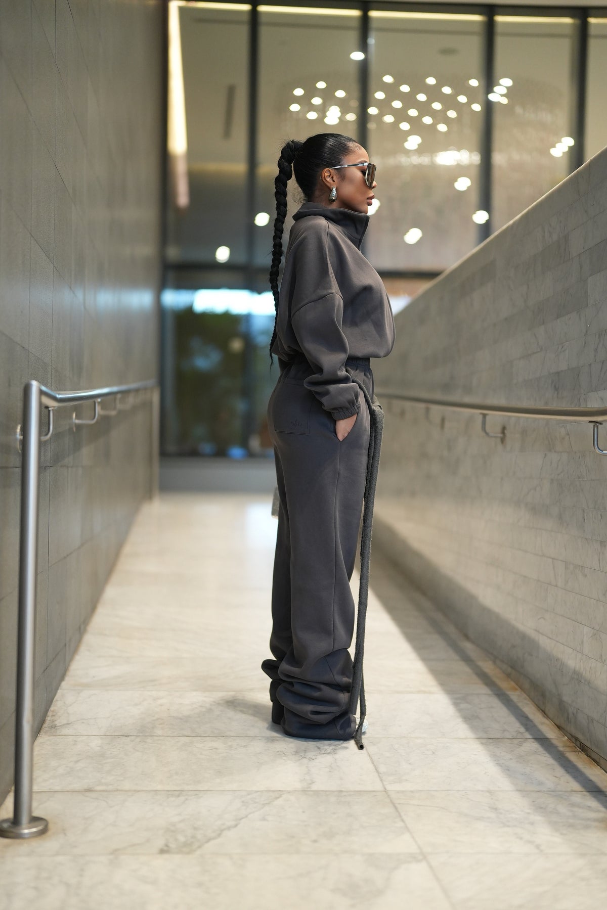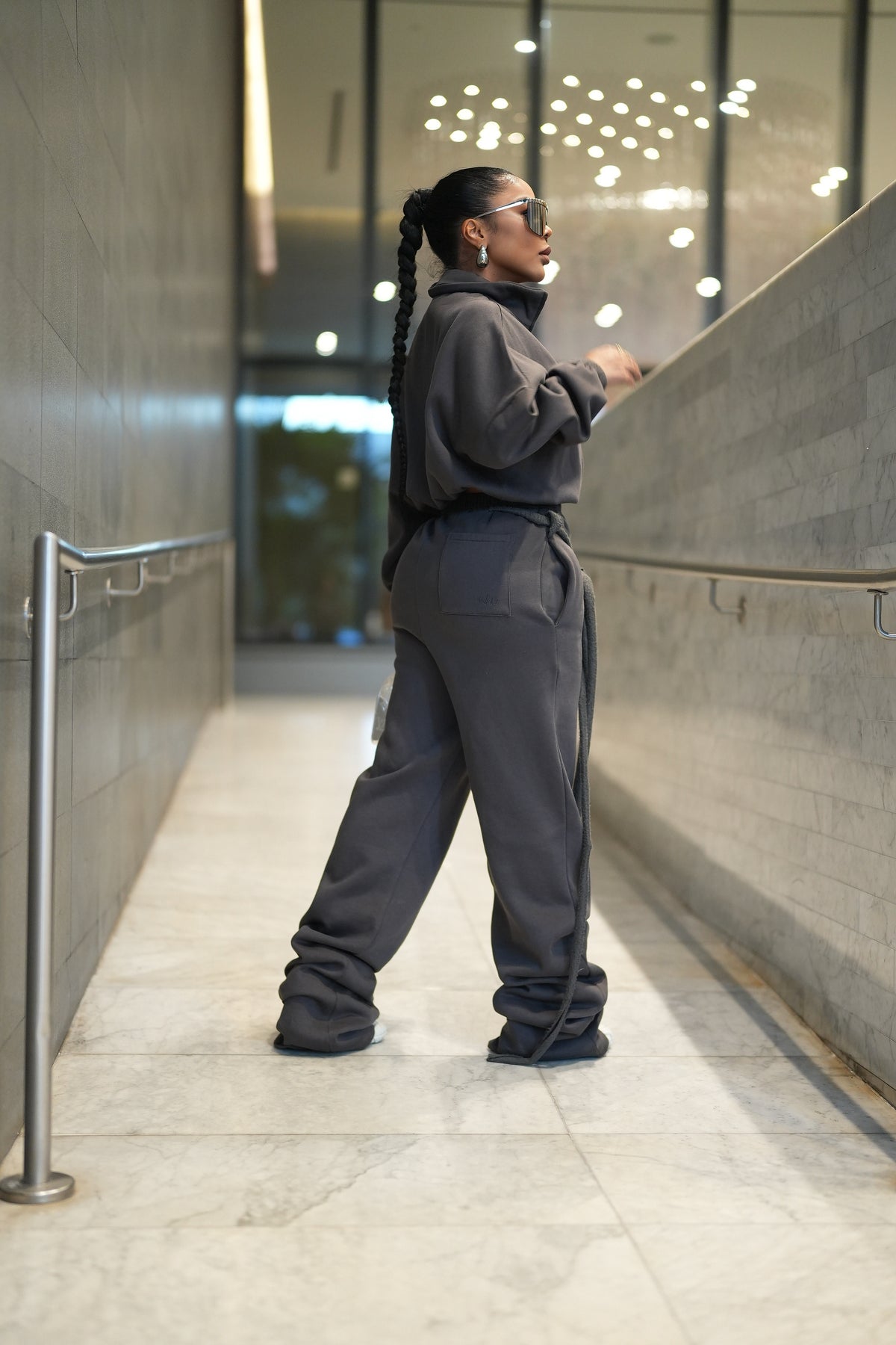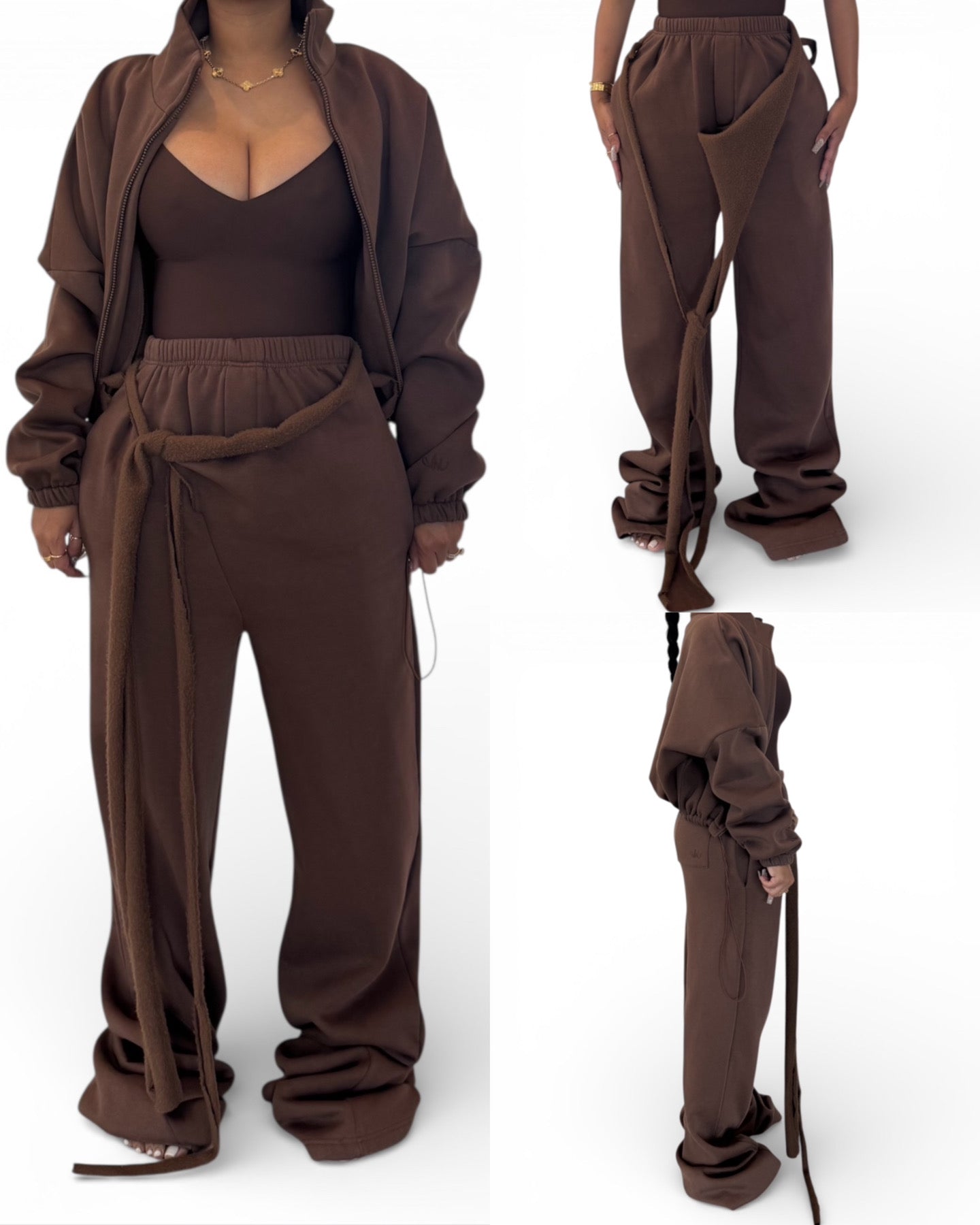 Drip Sweatpants have relaxed drop fit and extra long 40 inch inseam for a bottom scrunch. Elastic waistband. Raw hem front flap with 2 extra long raw strings that can be knotted together or wrapped around thru belt loops. Hand pockets and 1 butt pocket with subtle embroidered MM Logo. Extra crotch front flap for that front zipper jean illusion.