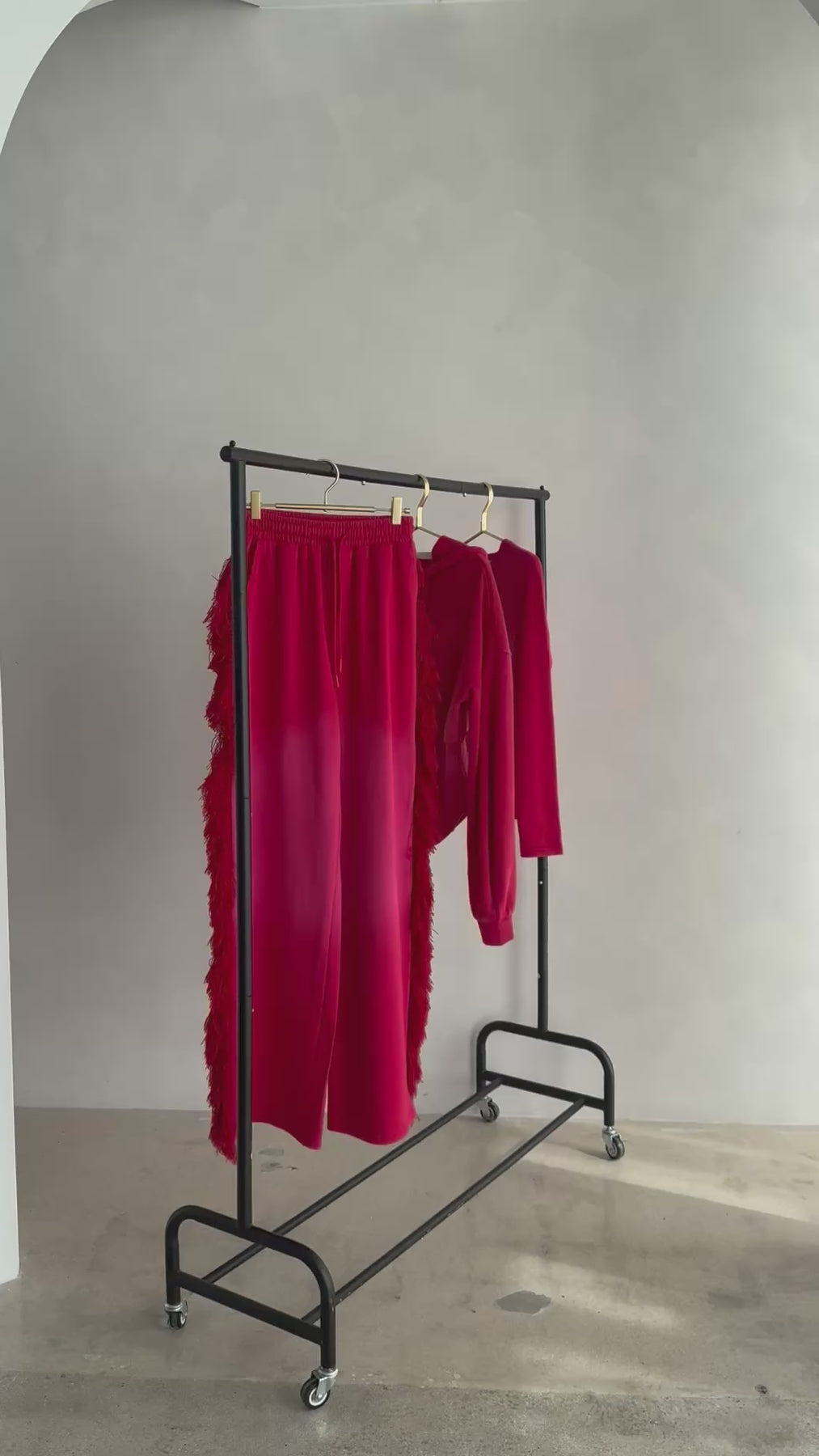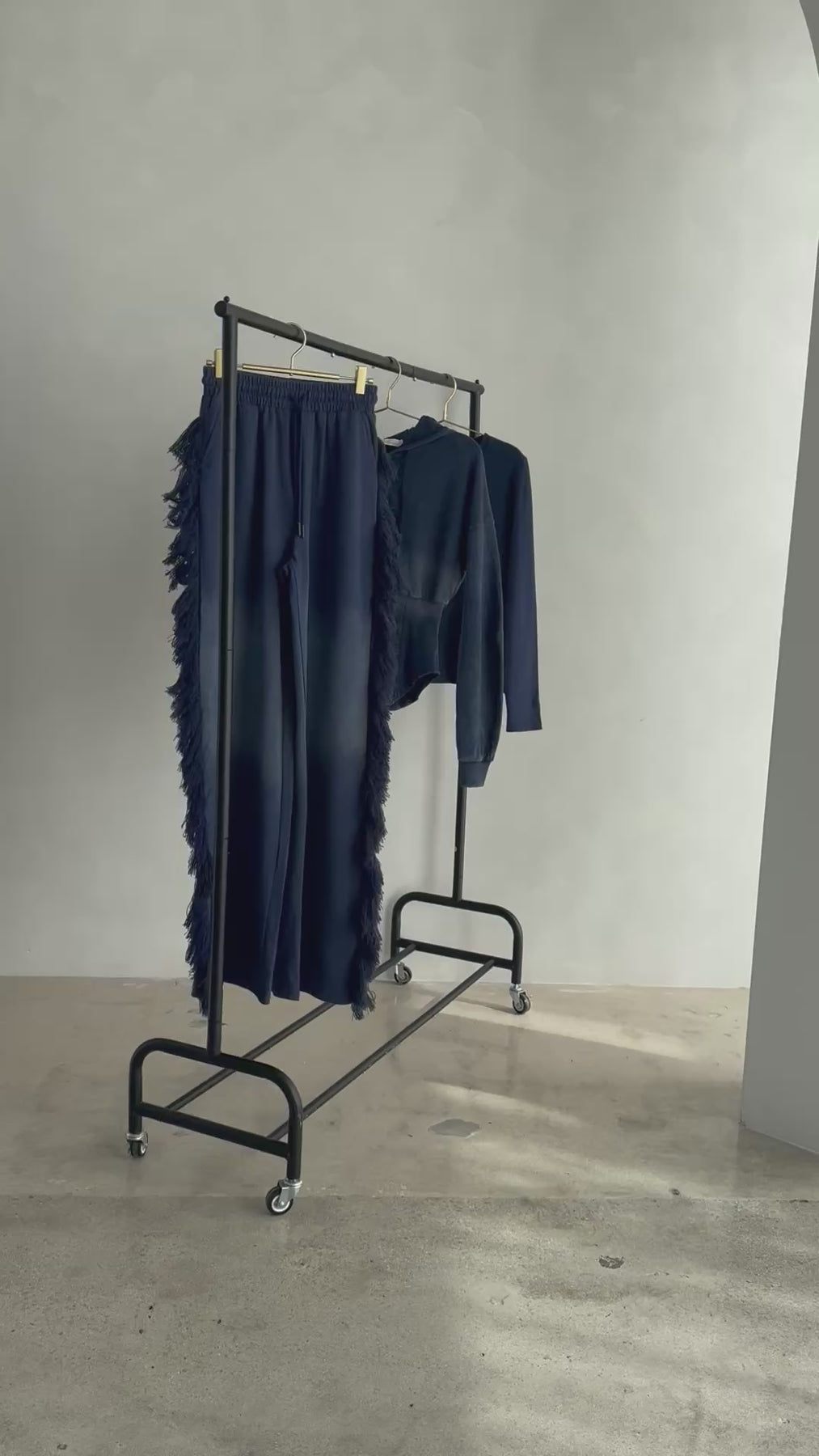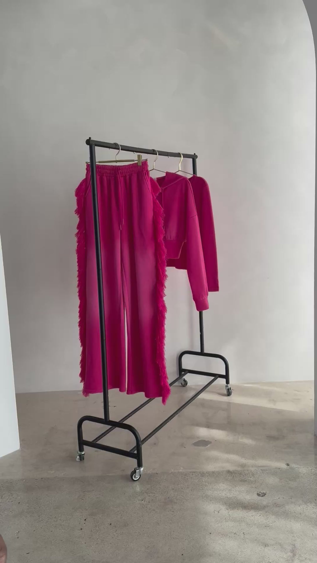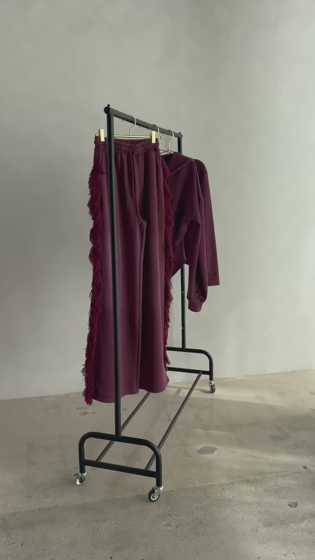 FRINGE PANTS. The pants have a relaxed wide fit. The waistband is thick and meant to cinch in your waistline. The dramatic fringe is a premium thick and fluffy thread meant to draw attention to your shape for an hour glass illusion. One butt pocket. Hand pockets. These pants alone are a statement piece.