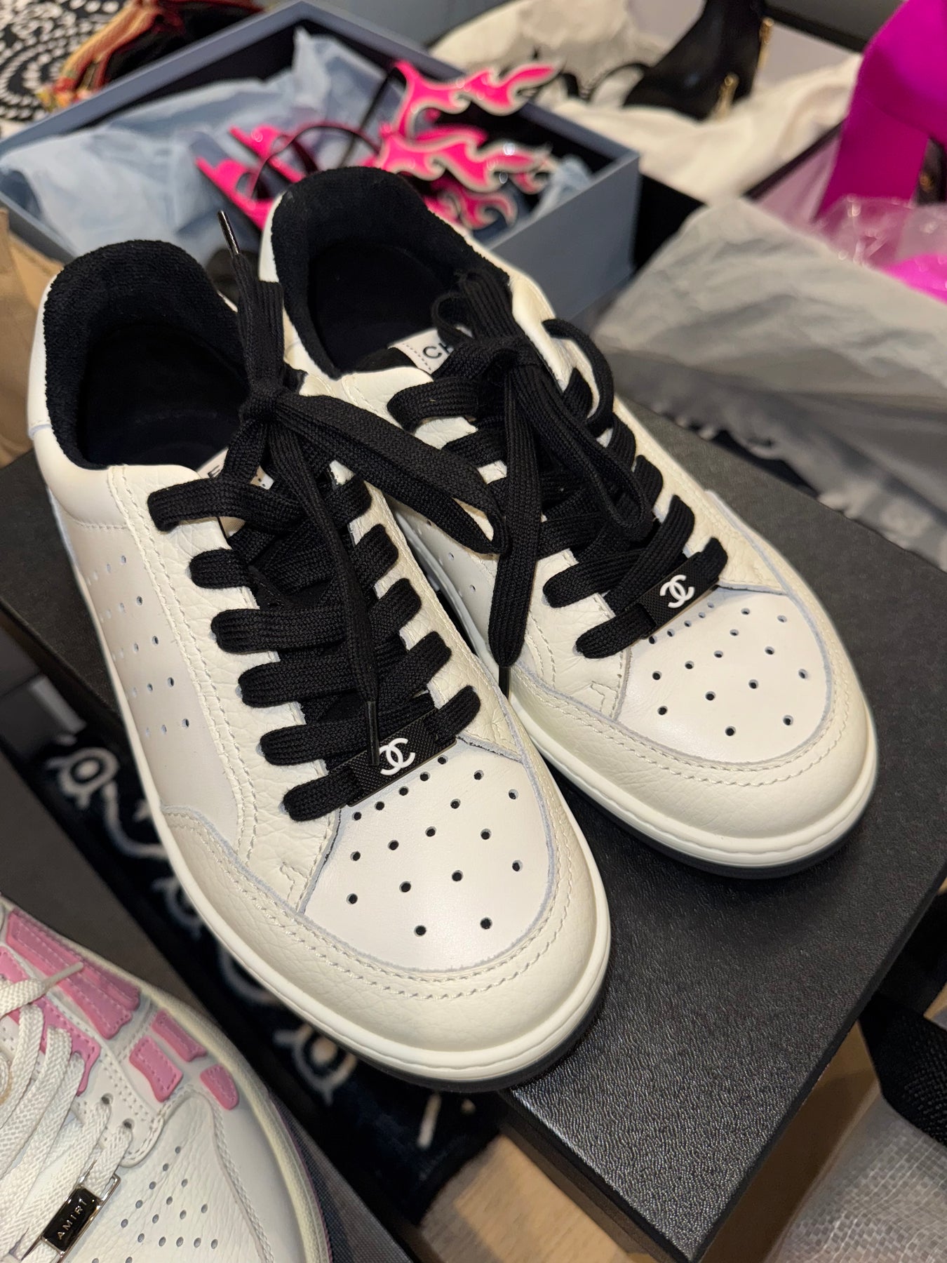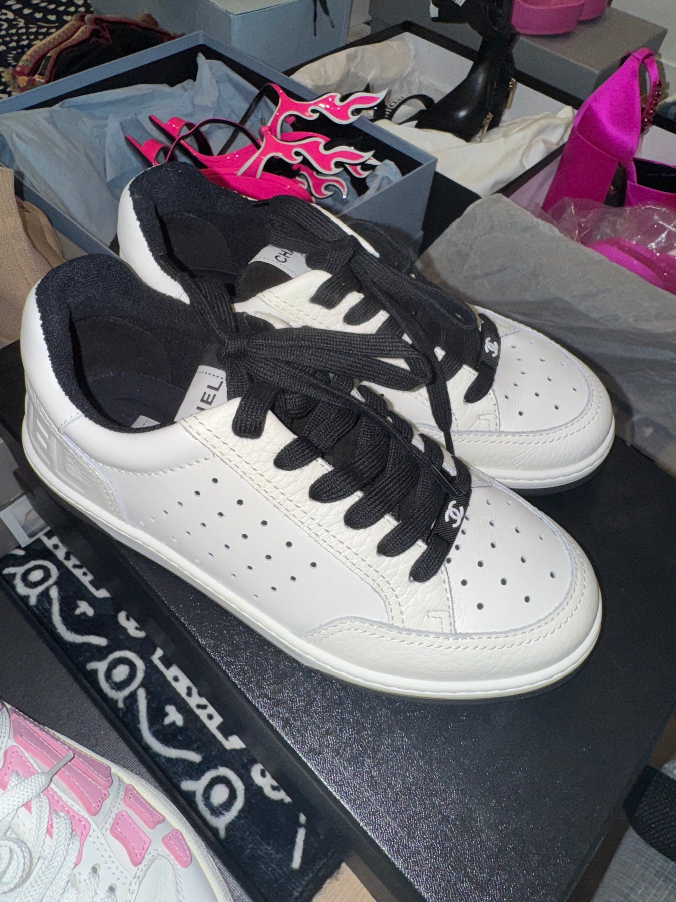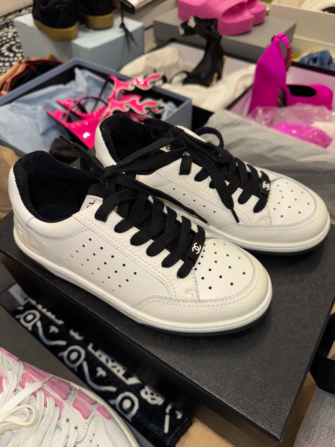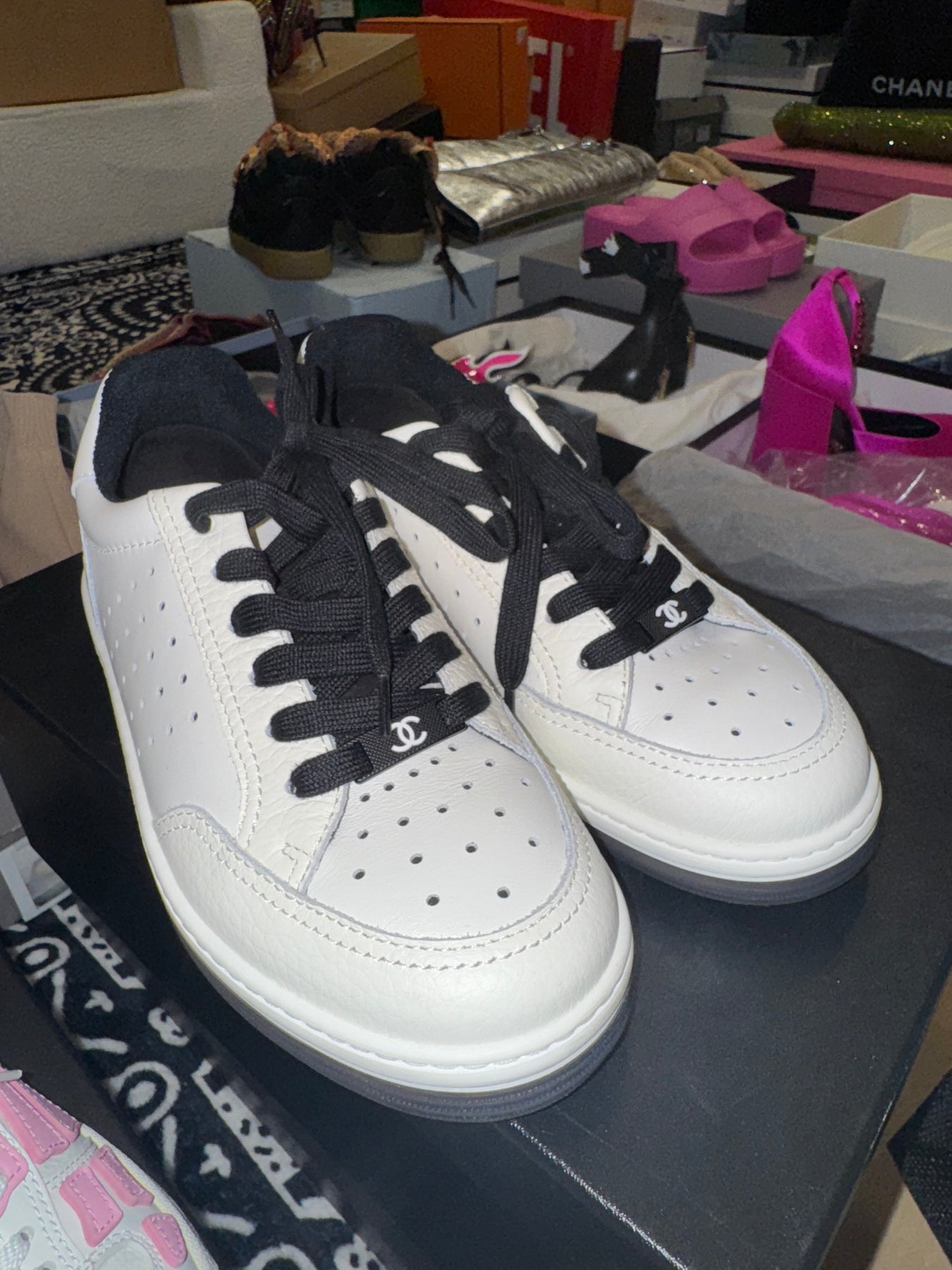 Chanel white black trainers 36