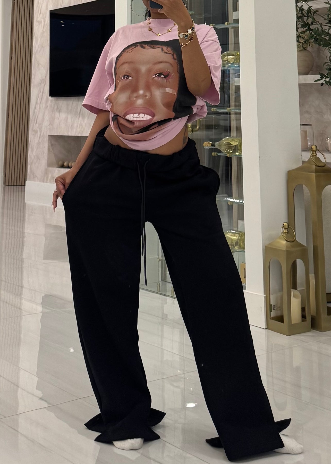 Handpockets Functional Drawstring Slits at hem. Sweatpants cannot be rolled up. There is a scrunch detail for flipped over illusion.