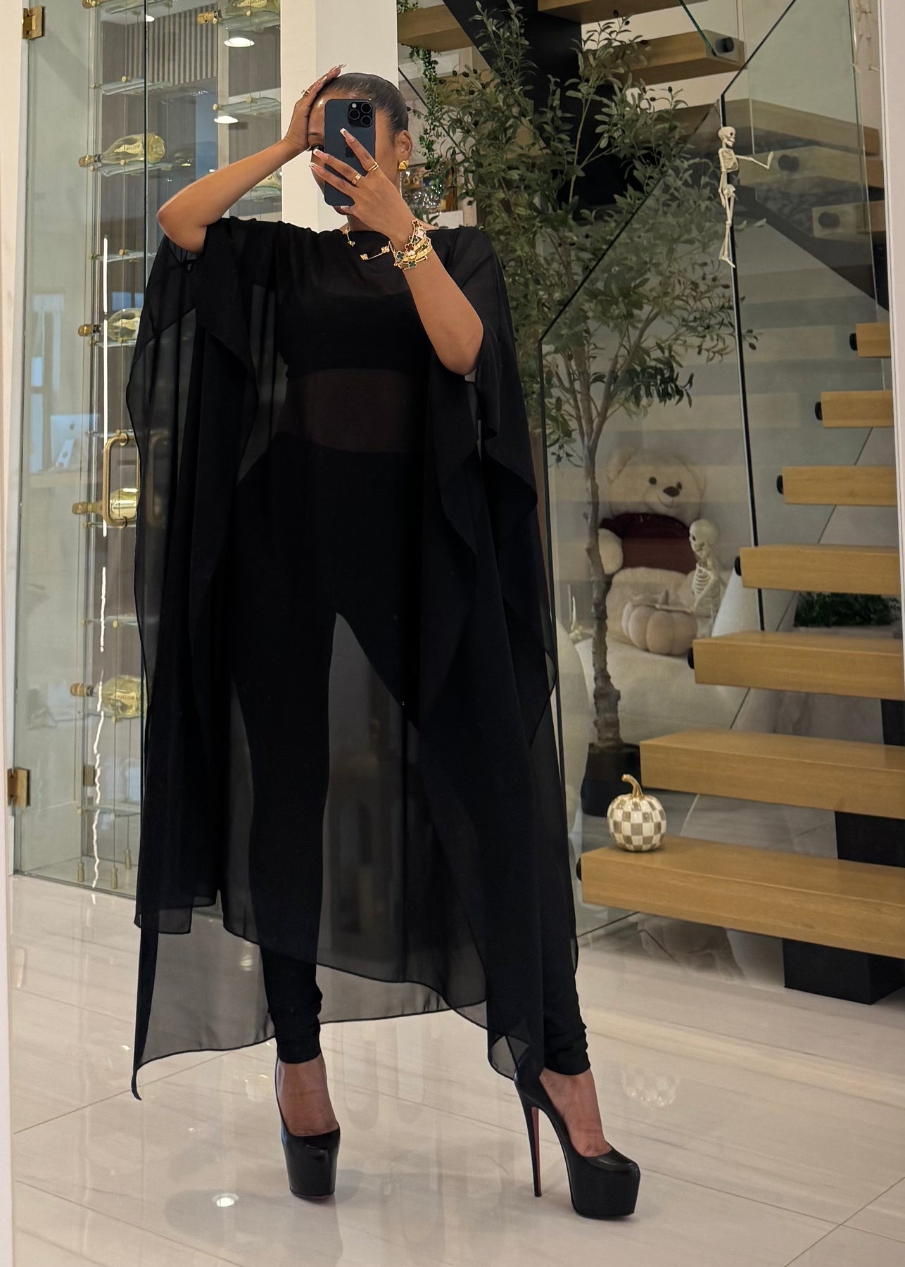 Super wide long fit relaxed open sides poncho semi sheer. Off the shoulder. Many ways to wear it. Arms go thru 2 side holes. Flowy fit