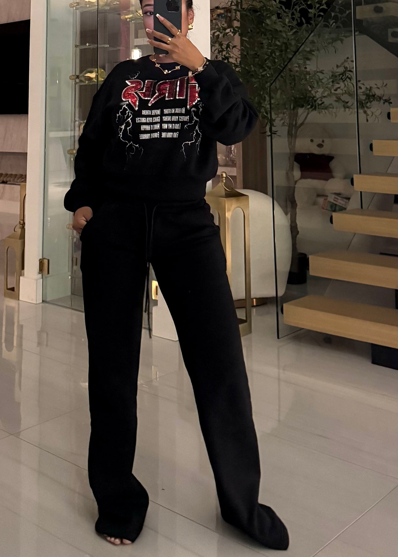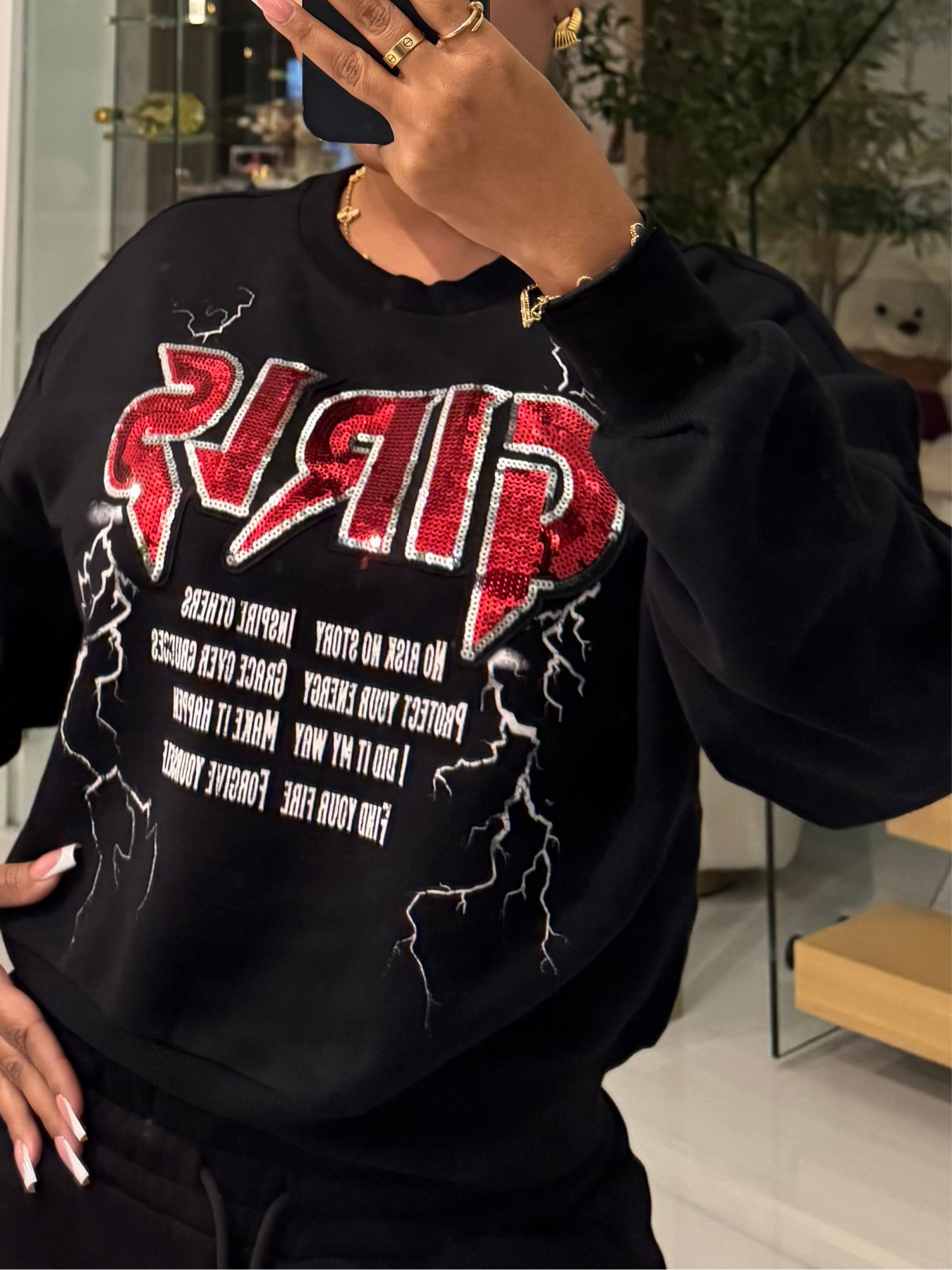 Sequin detail long sleeve mid length box fit sweatshirt
