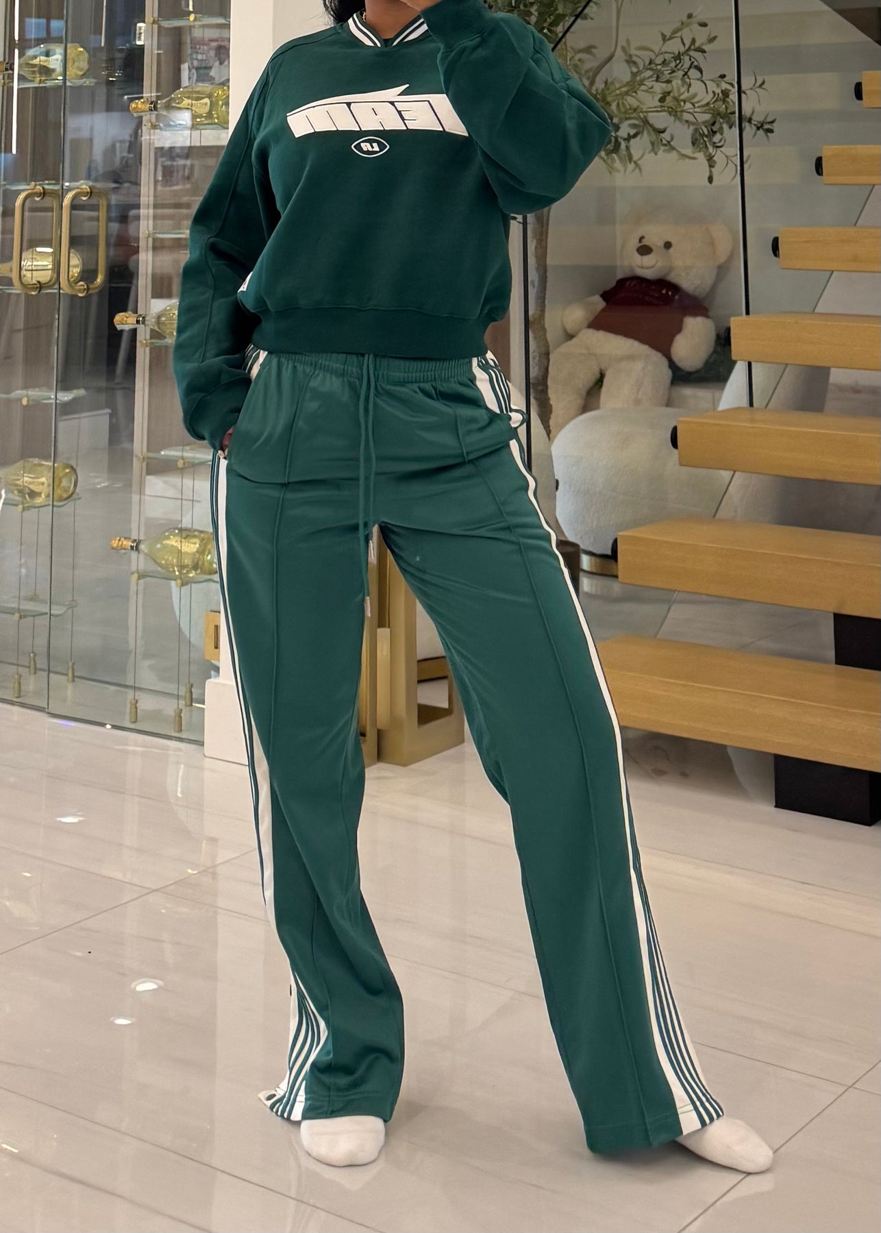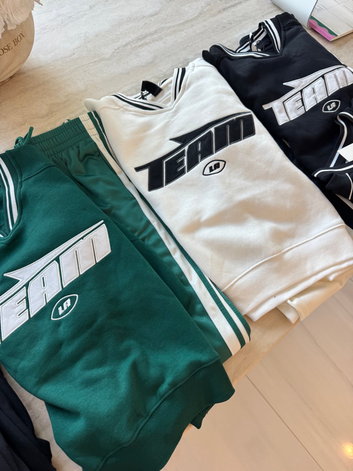 Relaxed box mid waistline length sweatshirt with embroidery patch detail and lined v neckline