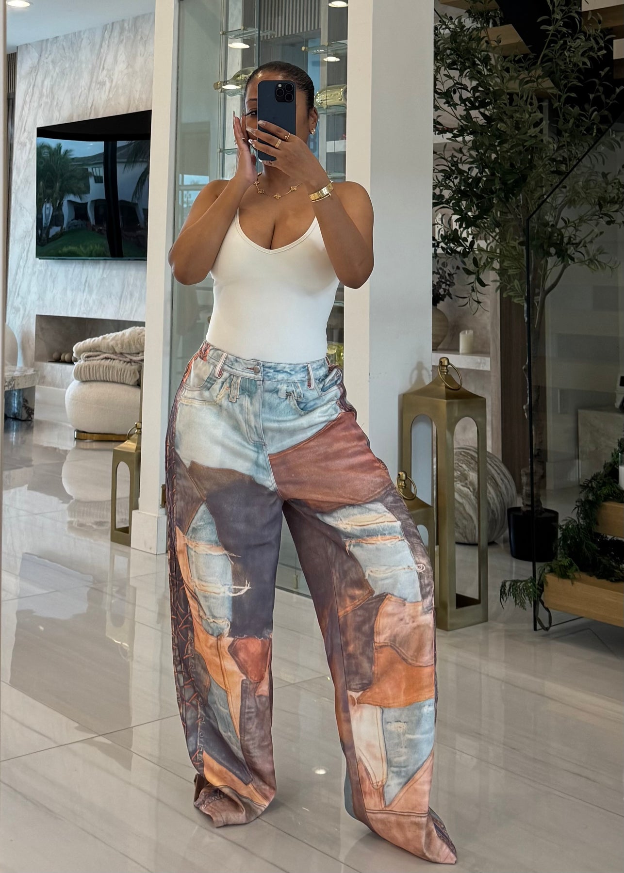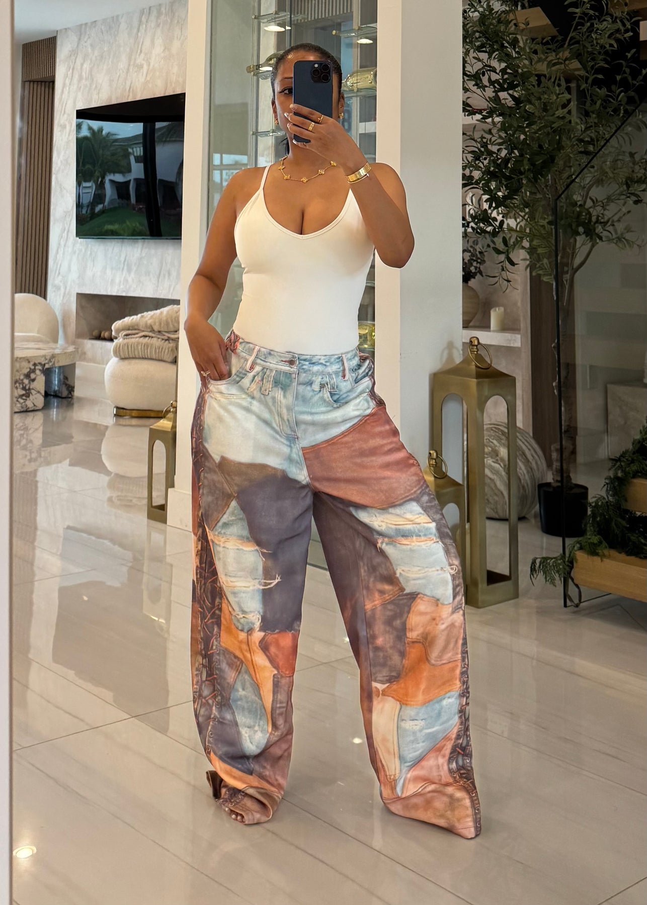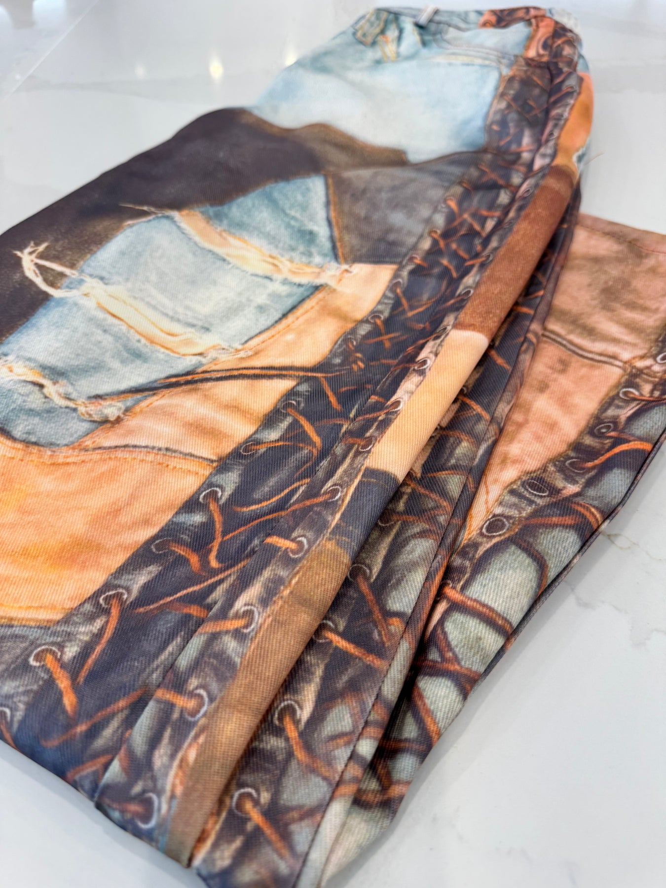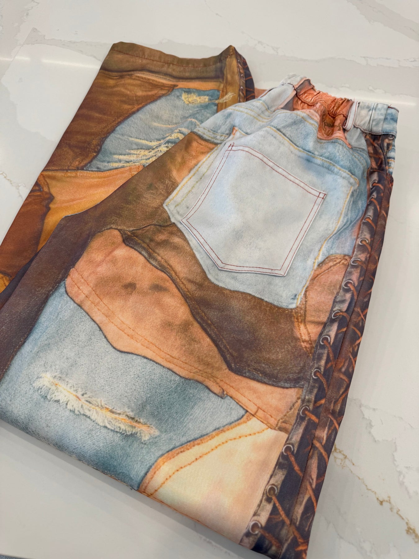 Button up zipper front with elastic waist back. Front hand pockets and butt pocket