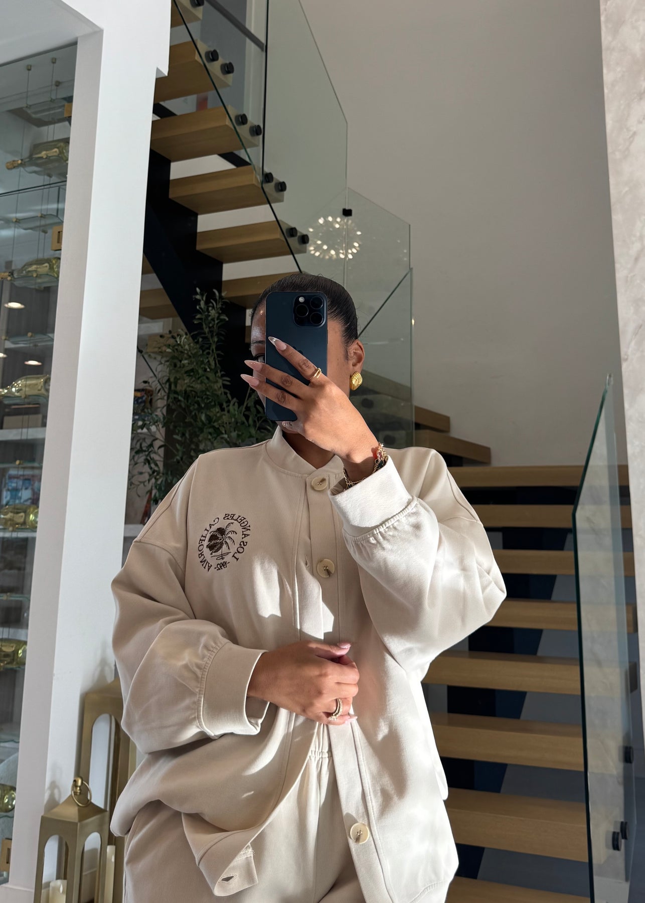 Oversized Long Sleeve Cardigan with Buttons with Cali logo