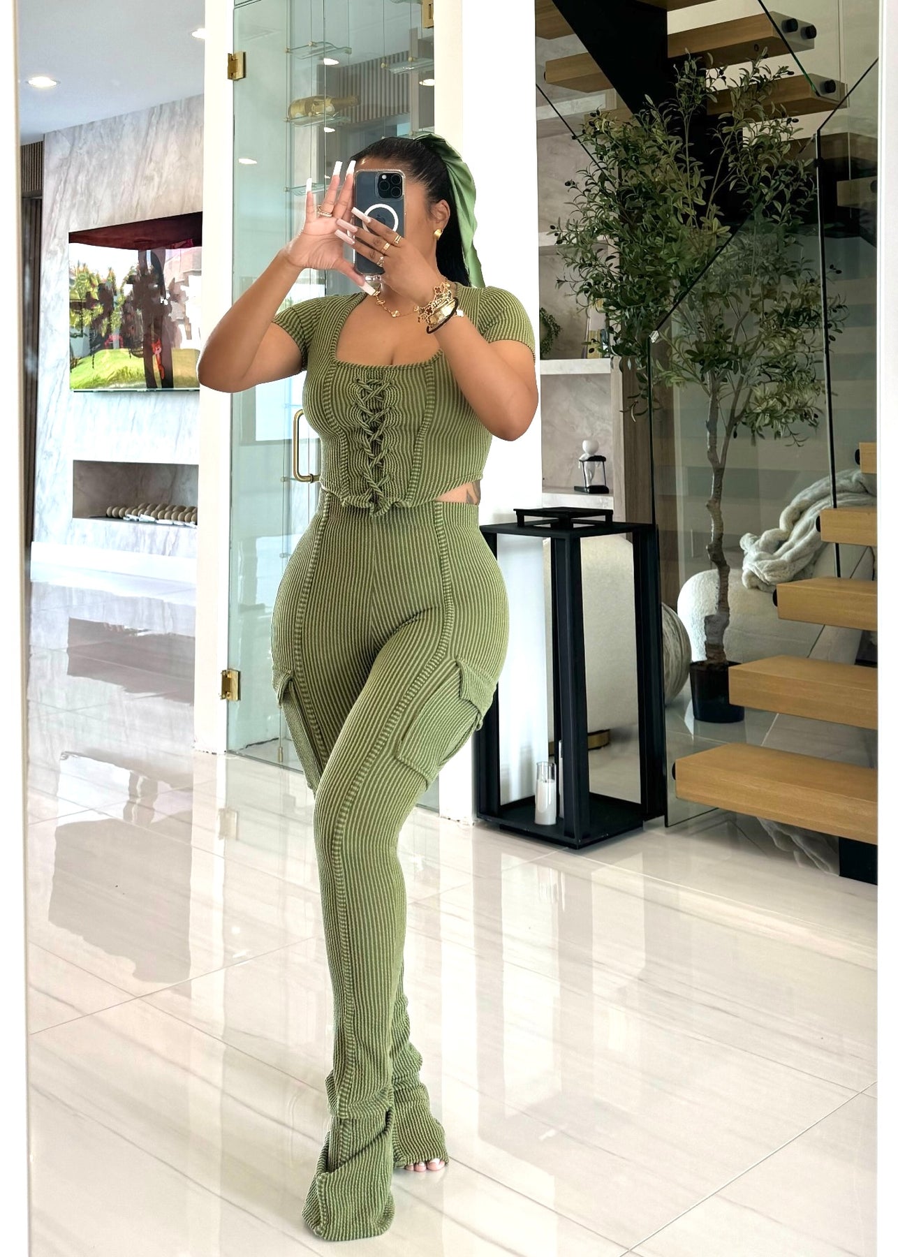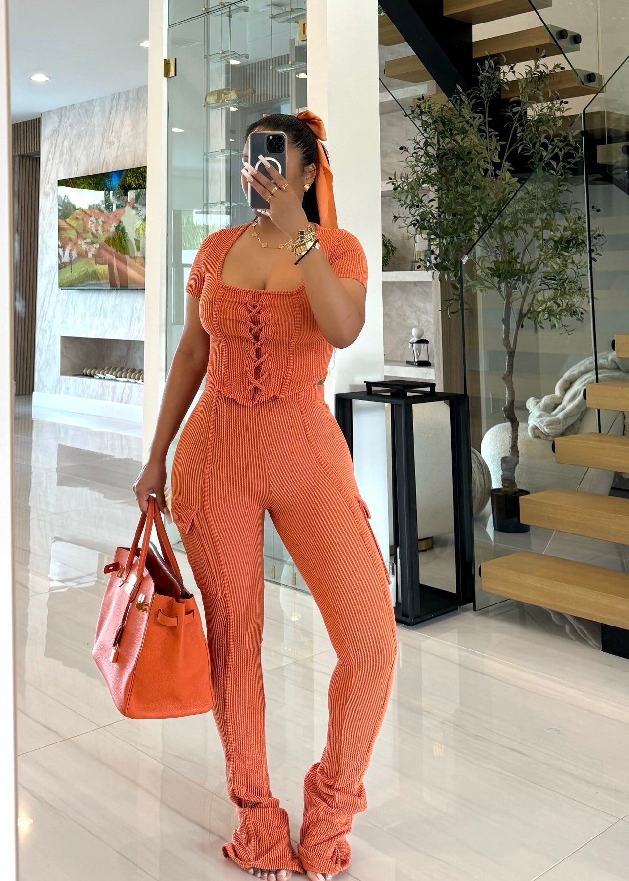 Bustier Shape Crop Top With Short Sleeve. Tight Rope Detail In Front
