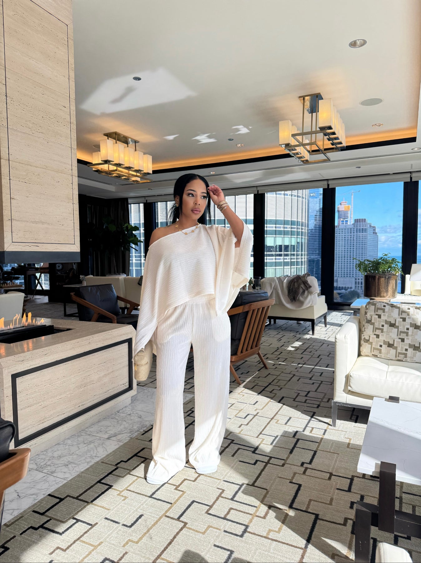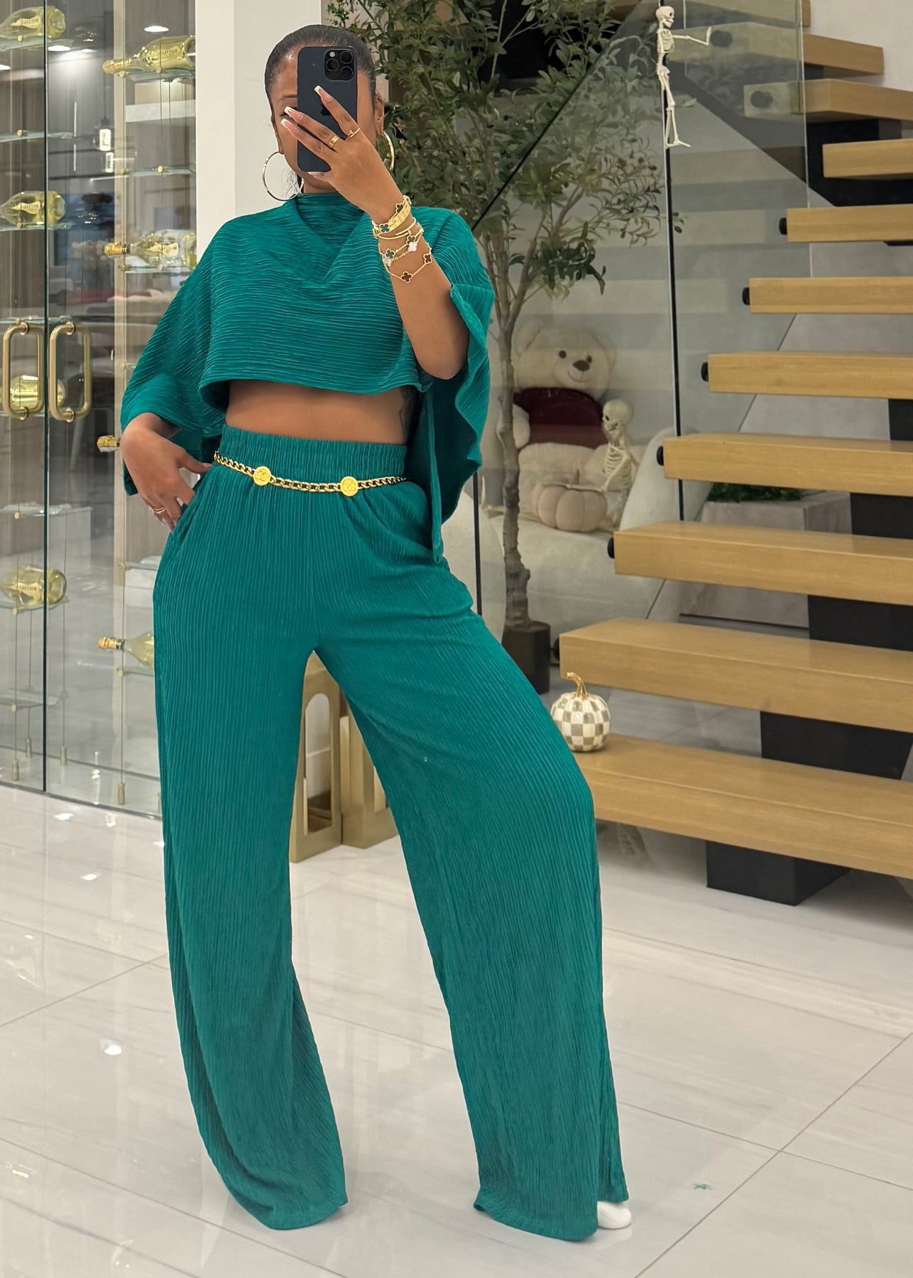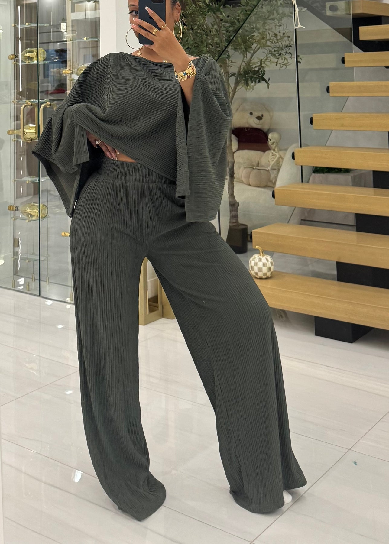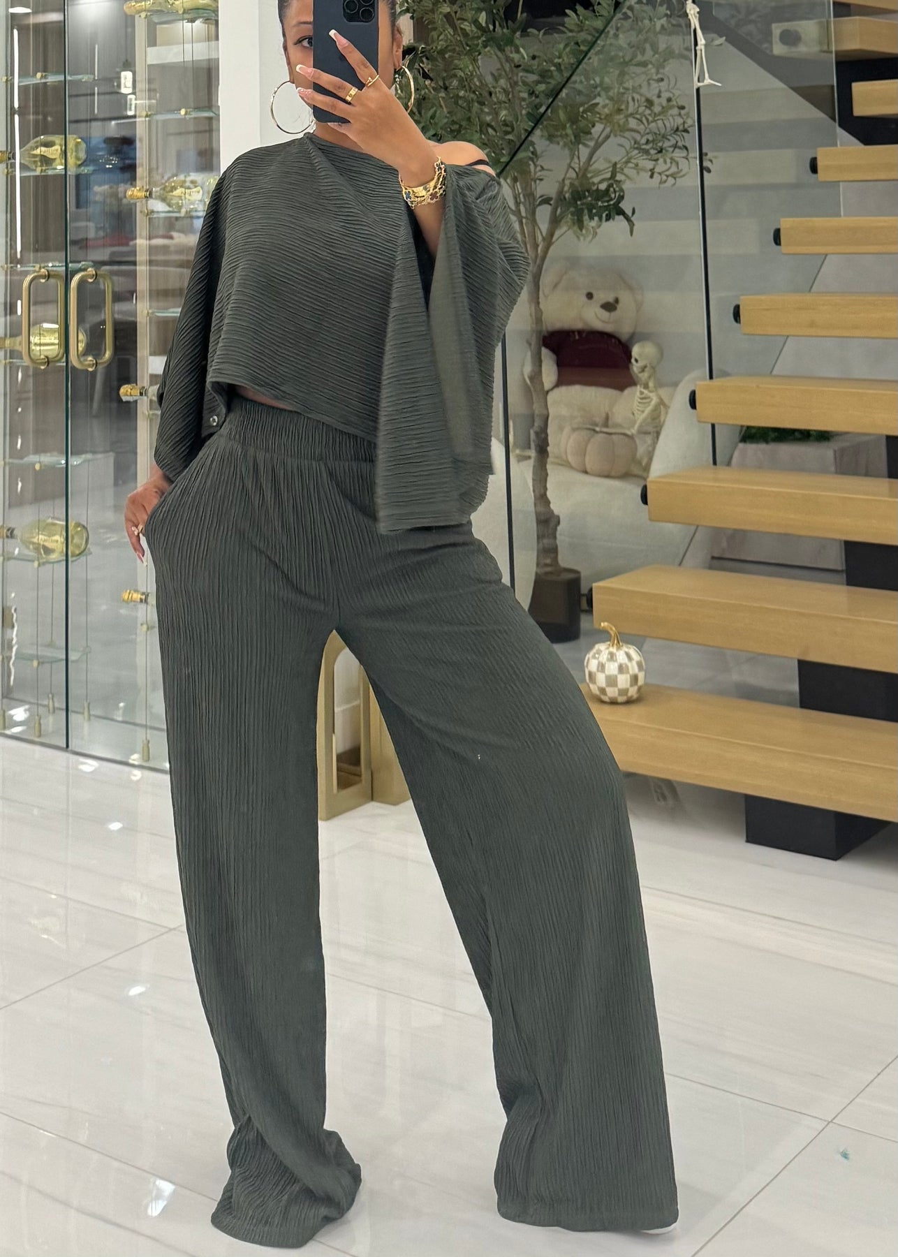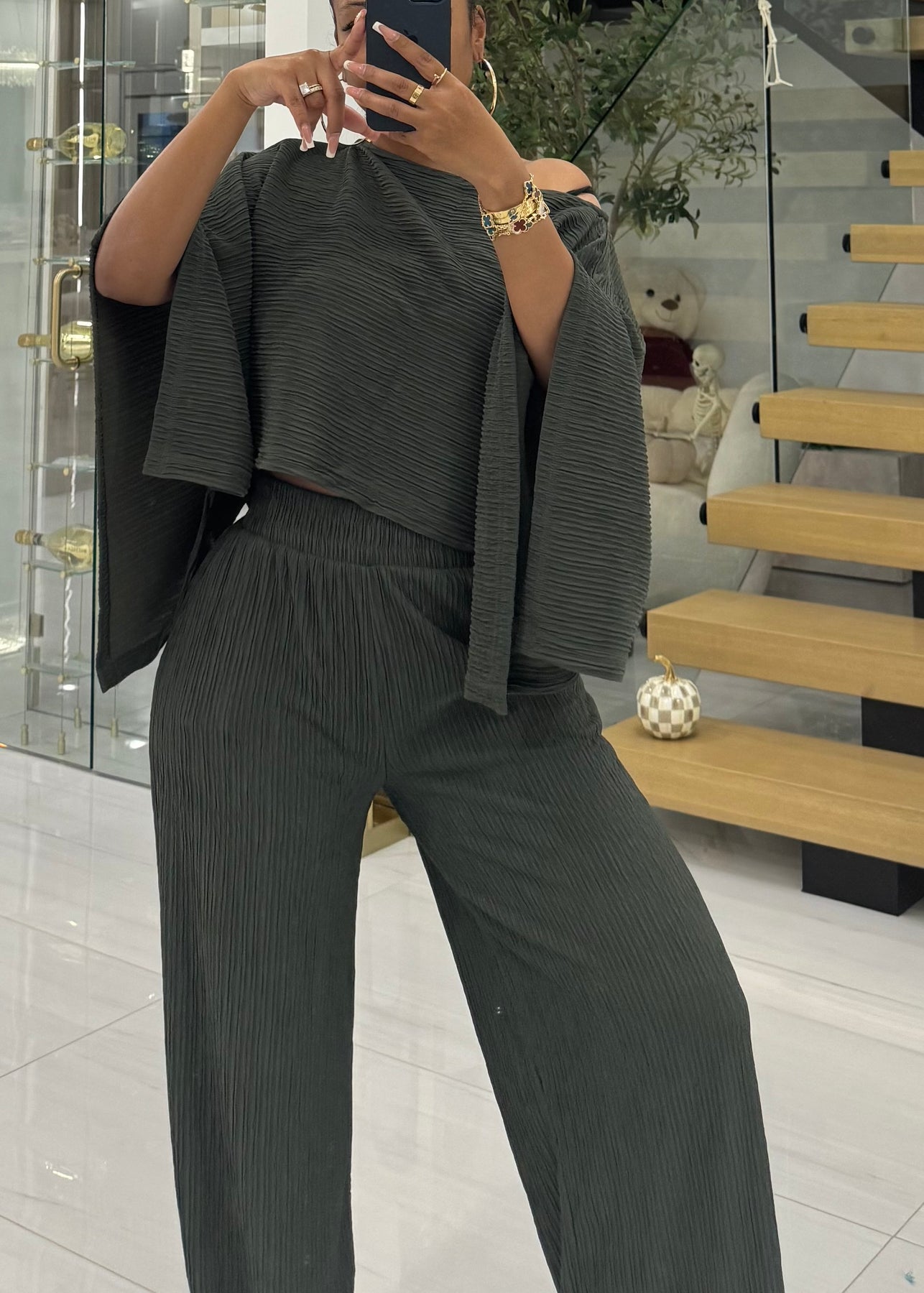 2 piece set mid weight pleated material