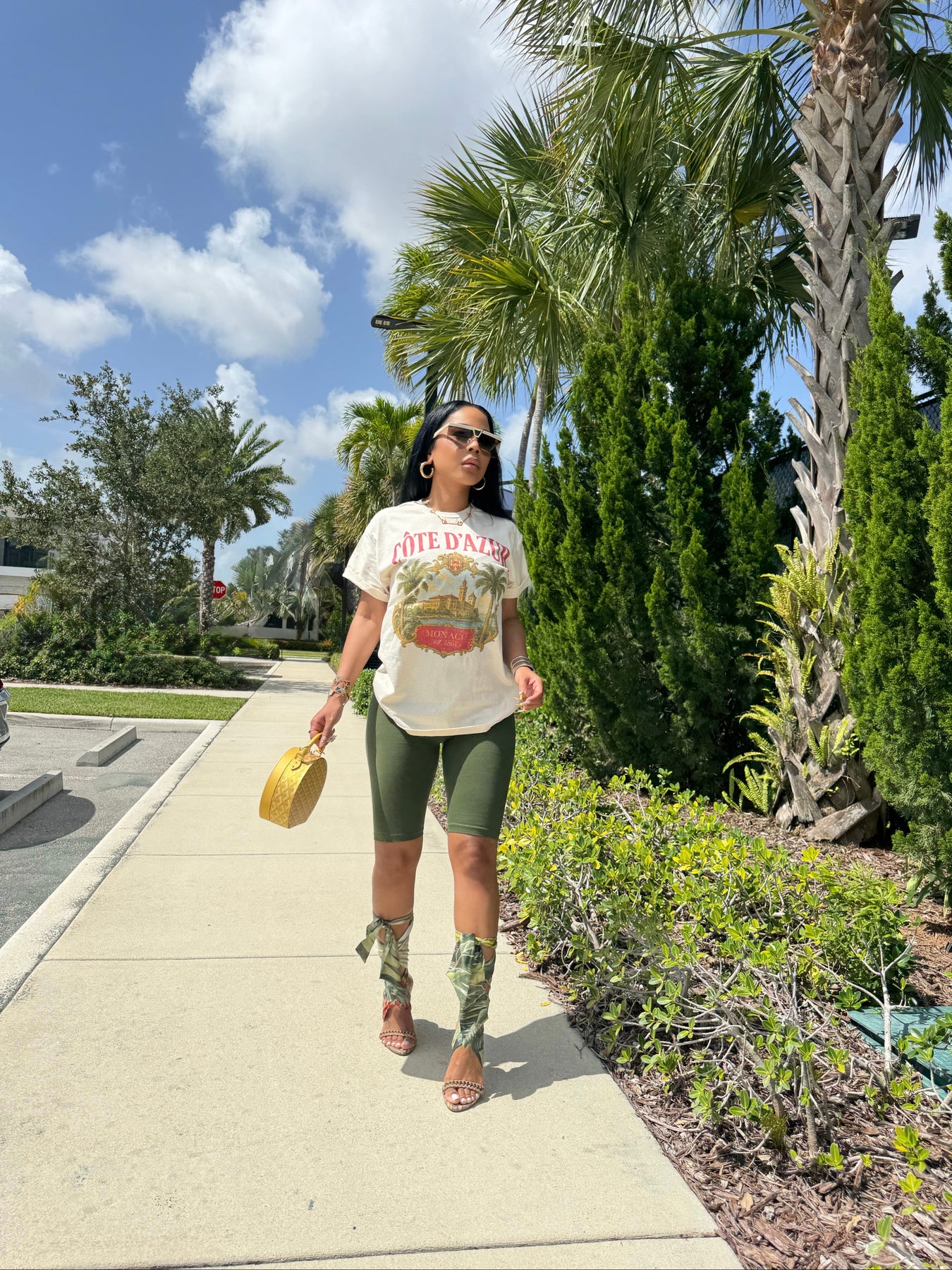 95% cotton 5% spandex biker shorts. These are not active wear / compression leggings. If you are in between sizes go with the bigger size.