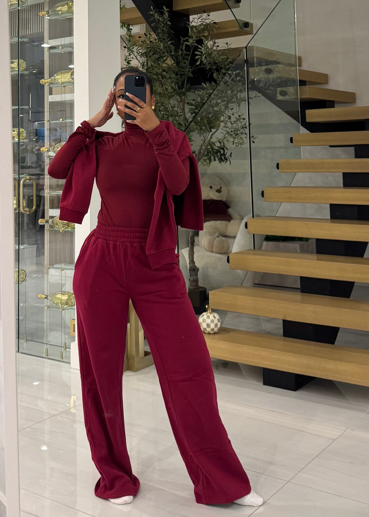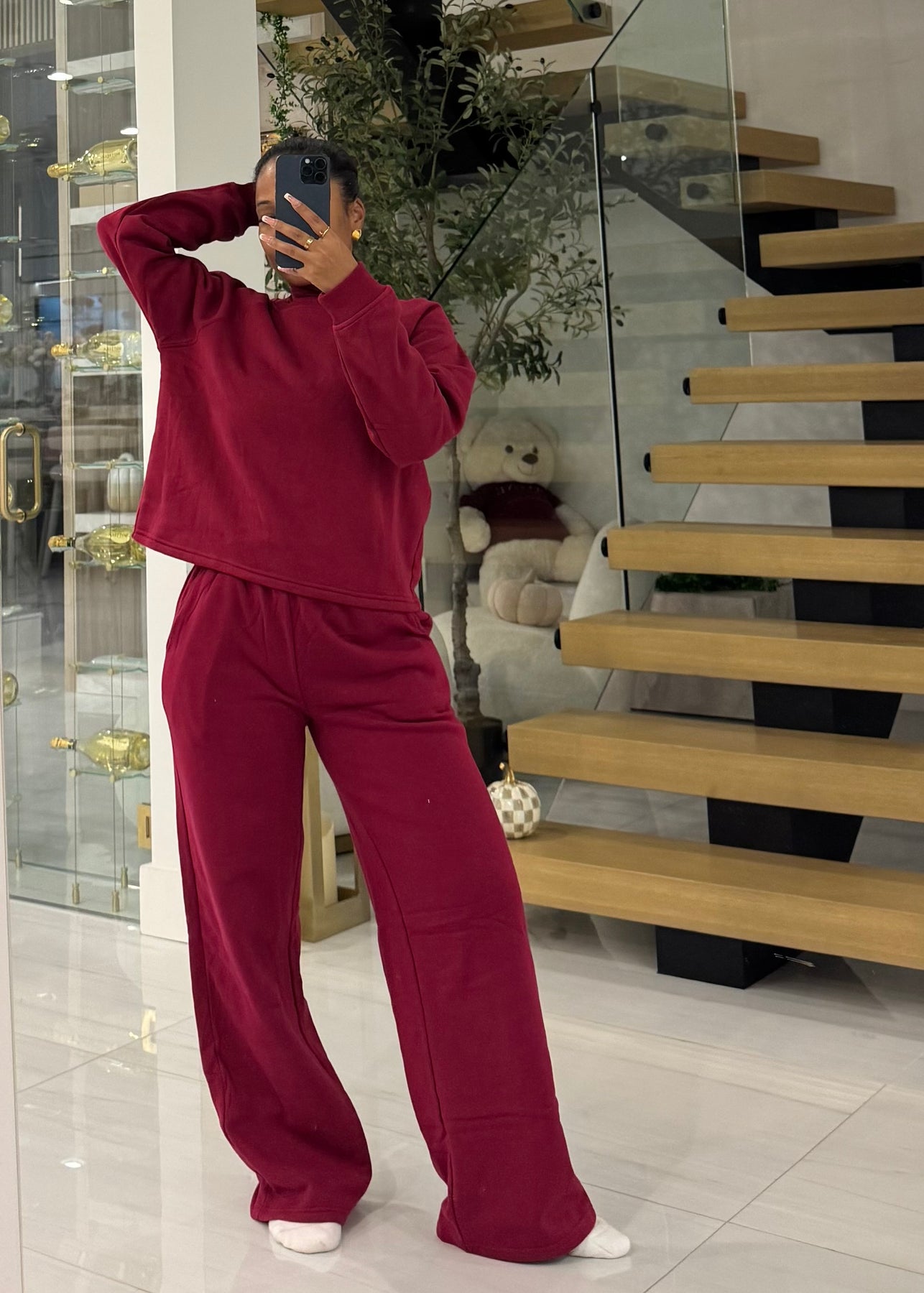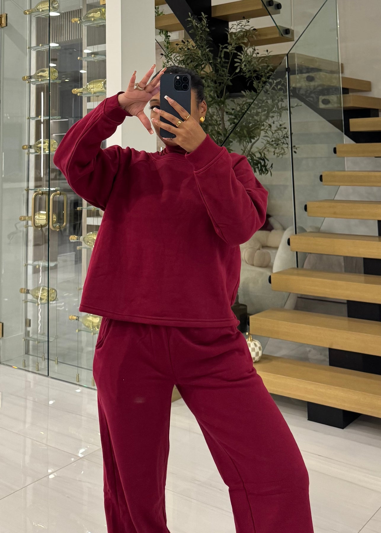 Mid length long sleeve sweatshirt fleece either boxy fit ( burgundy wine pictured ) or classic sweatshirt fit ( see dark olive )