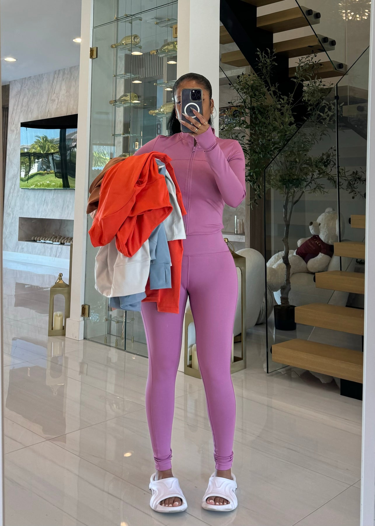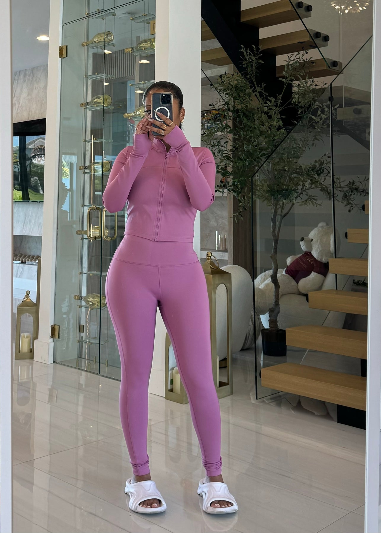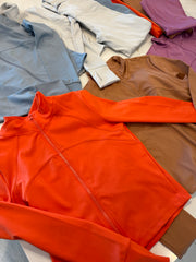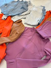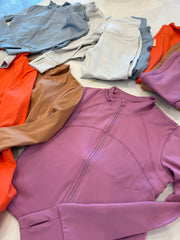 Mid length jacket with lining detail and compressed upper back. Thumb holes