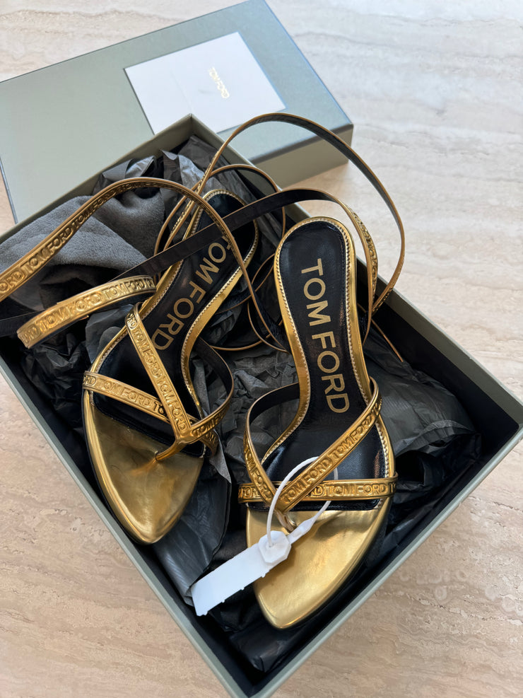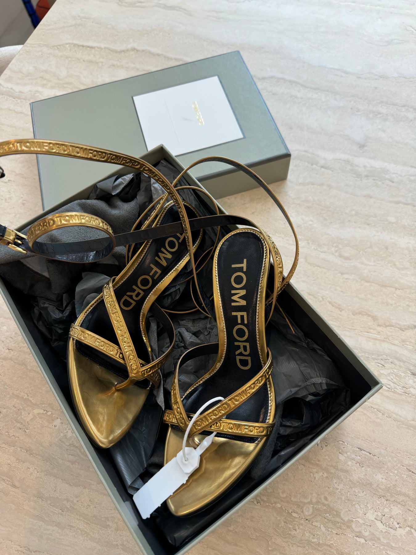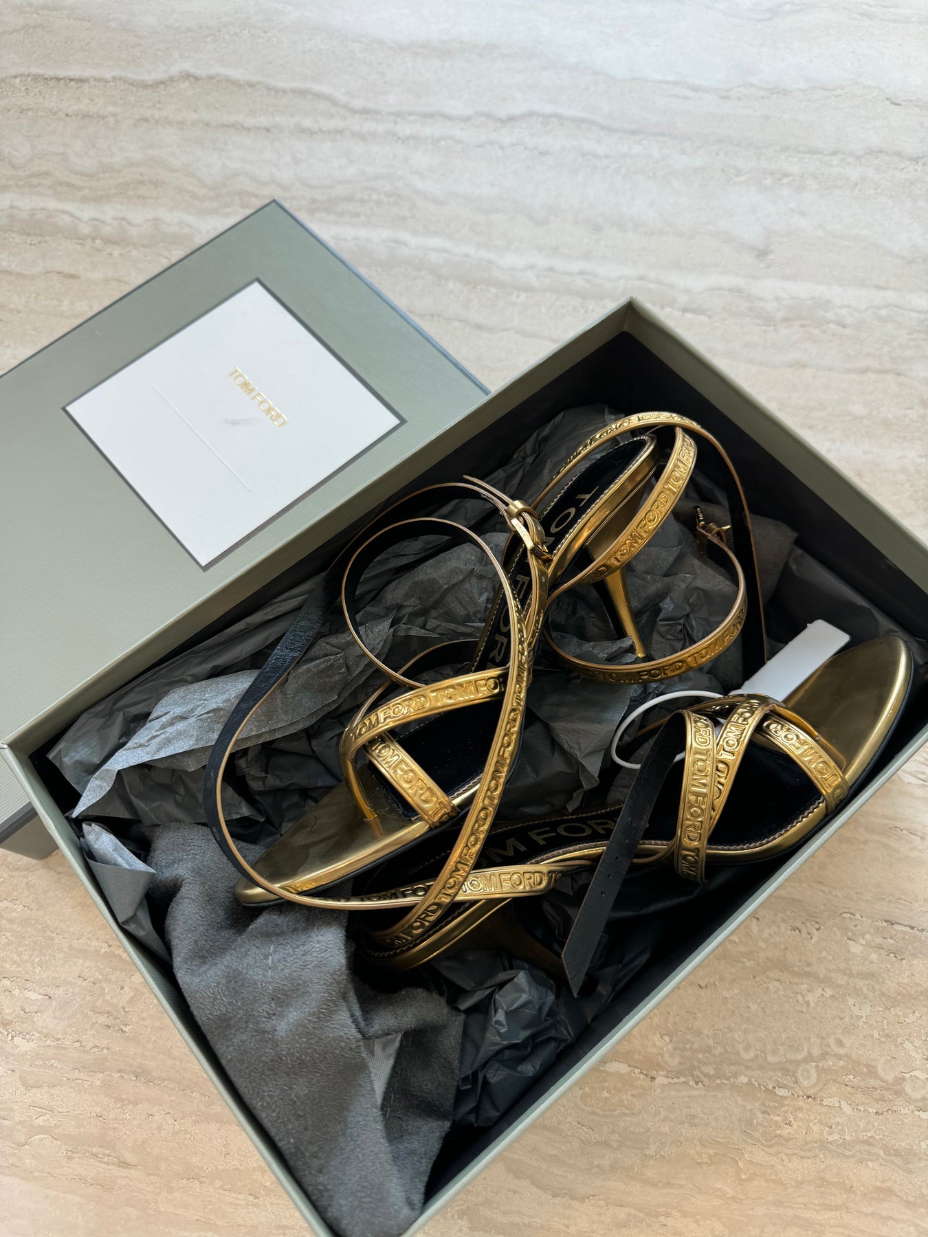 SAINT LAURENT STRAP HEEL GOLD LOGO