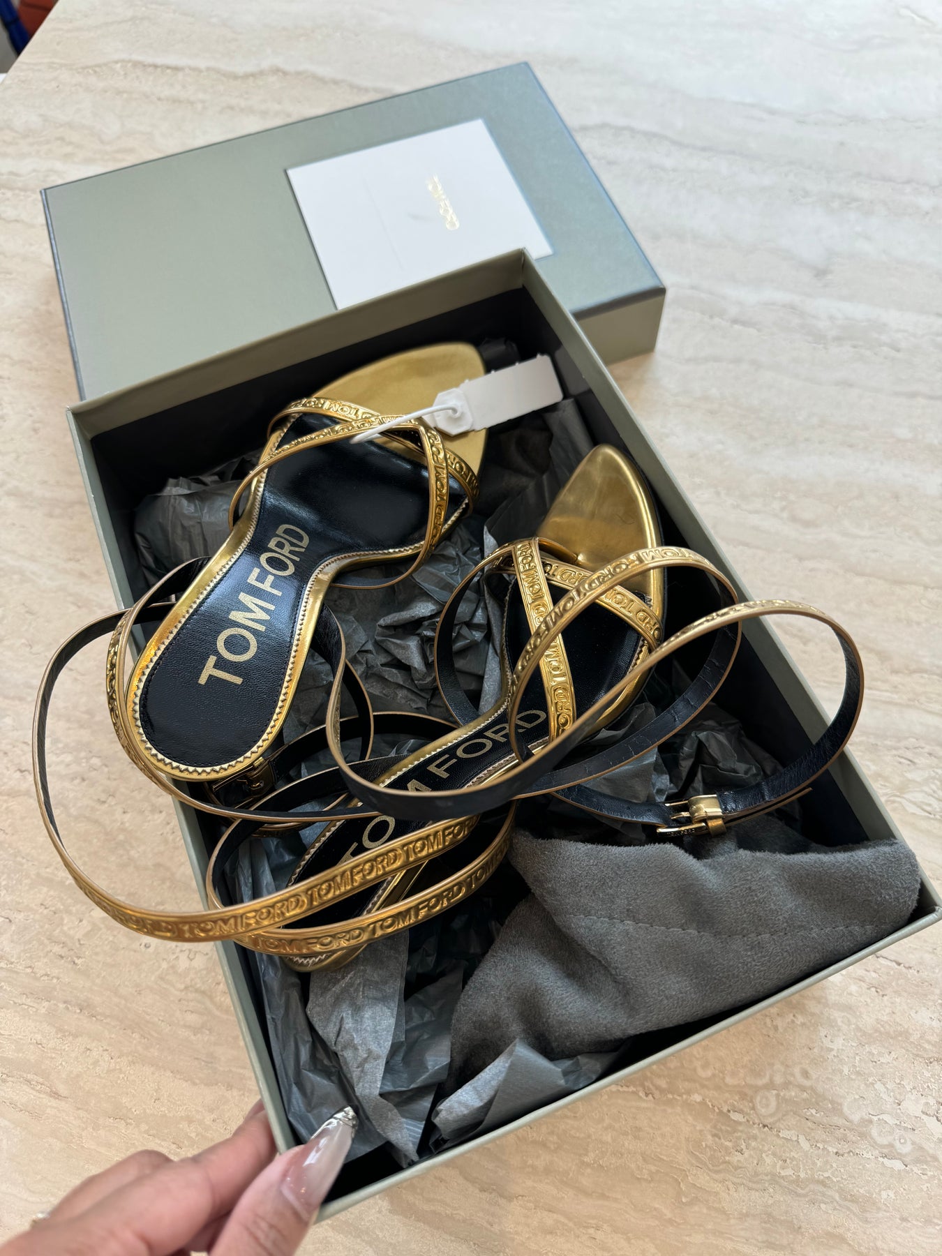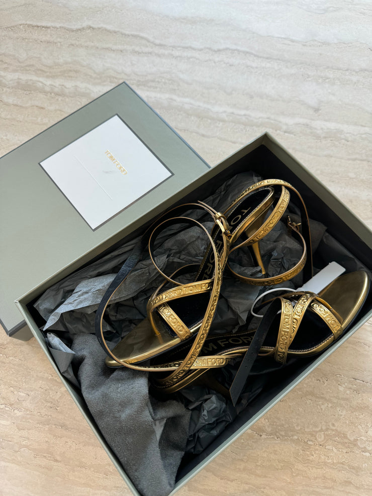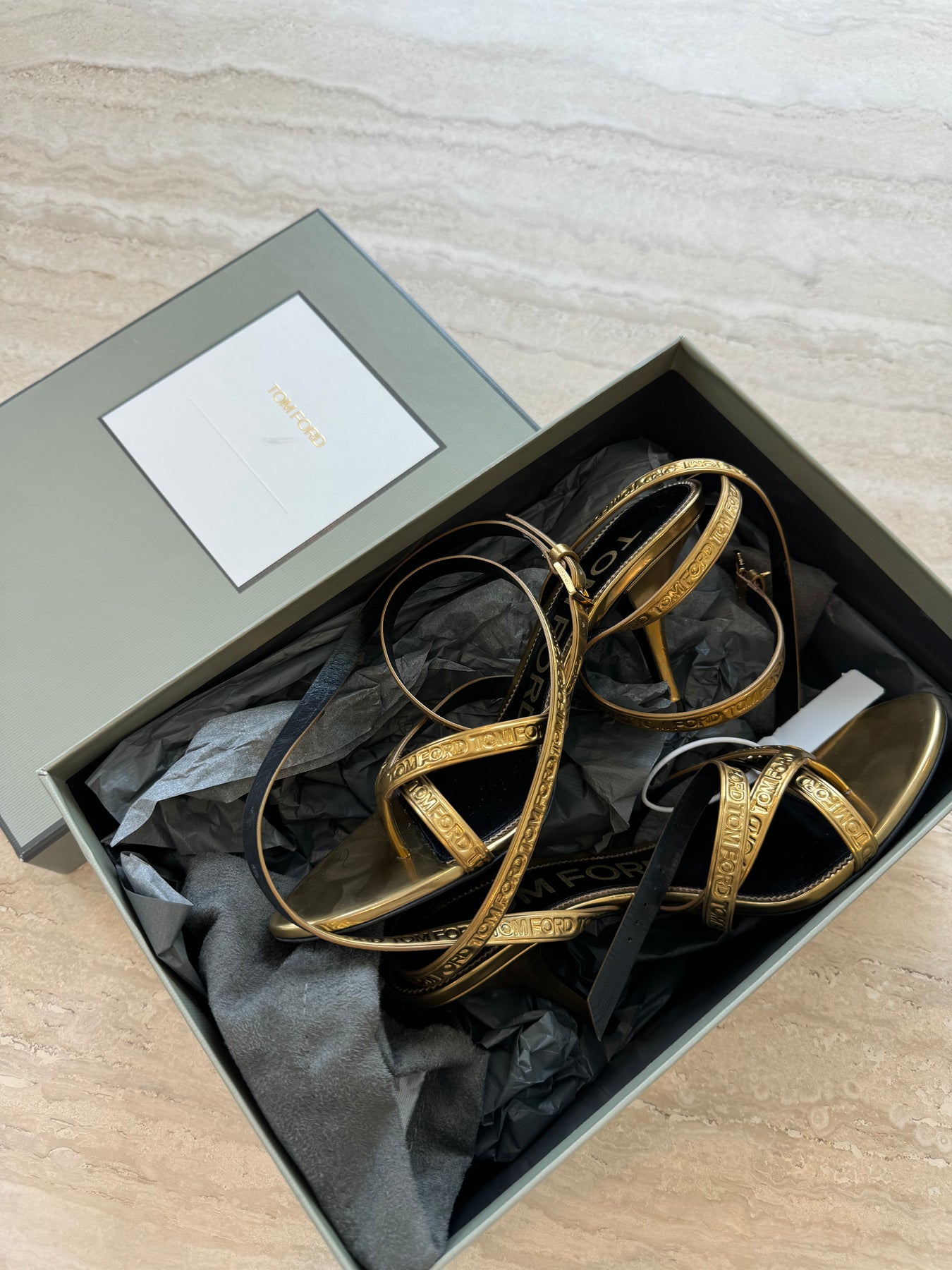 SAINT LAURENT STRAP HEEL GOLD LOGO